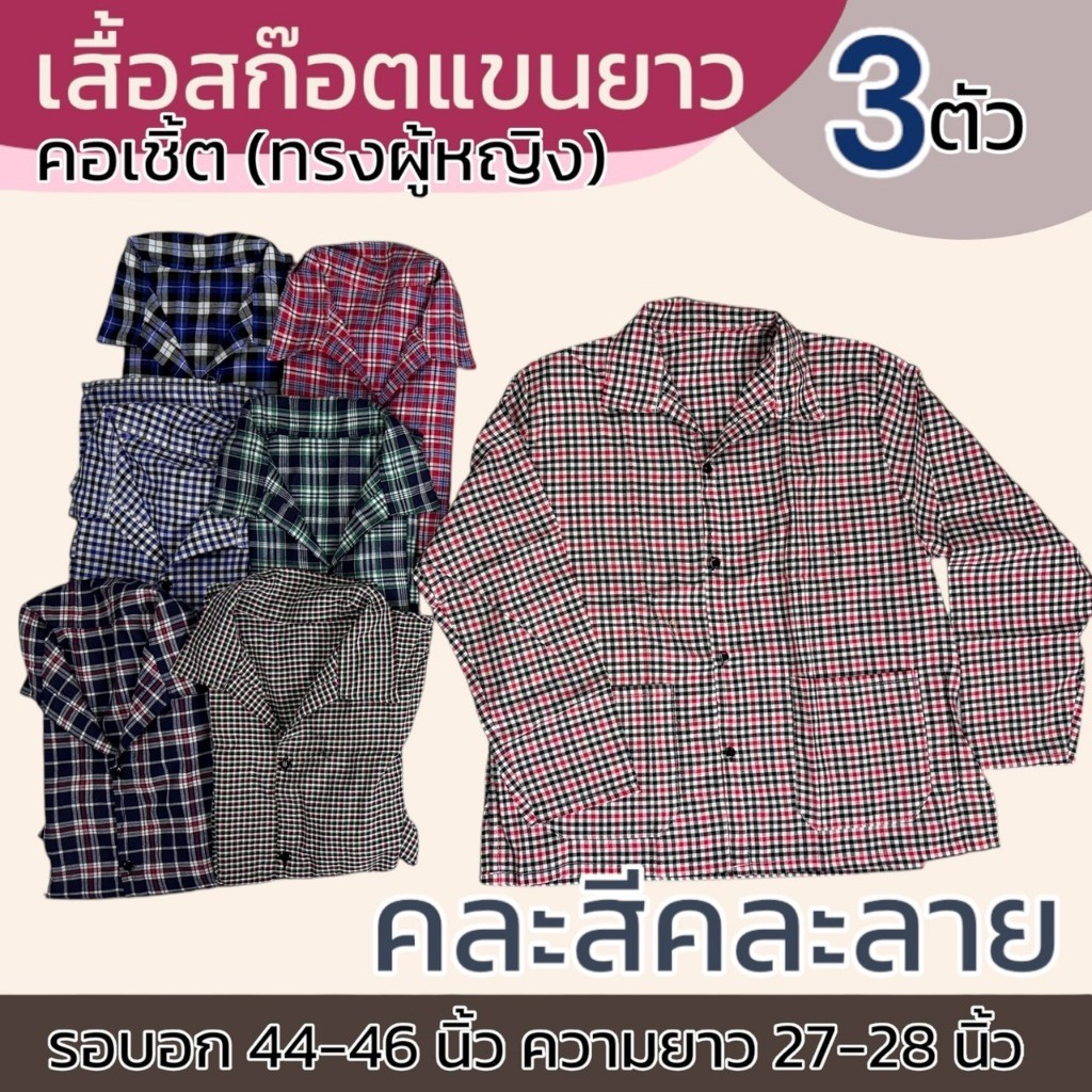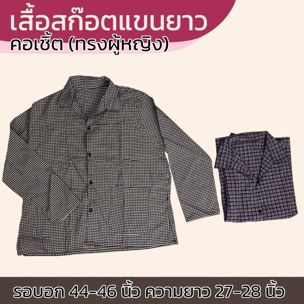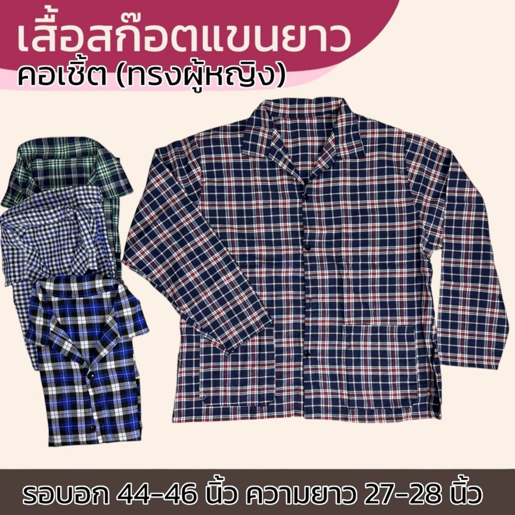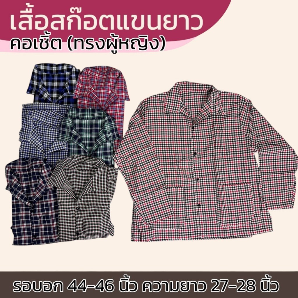 เสื้อลายสก็อต แขนยาว ทรงผู้หญิง แม่บ้าน ทำงาน ใส่ทำงาน เนื้อผ้าดี ผ้าบาง ผ้าทีซี K06