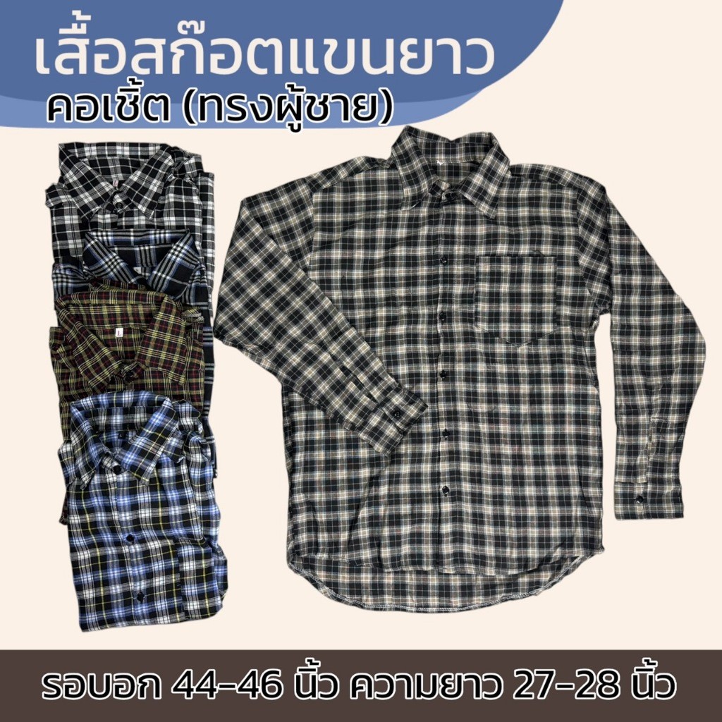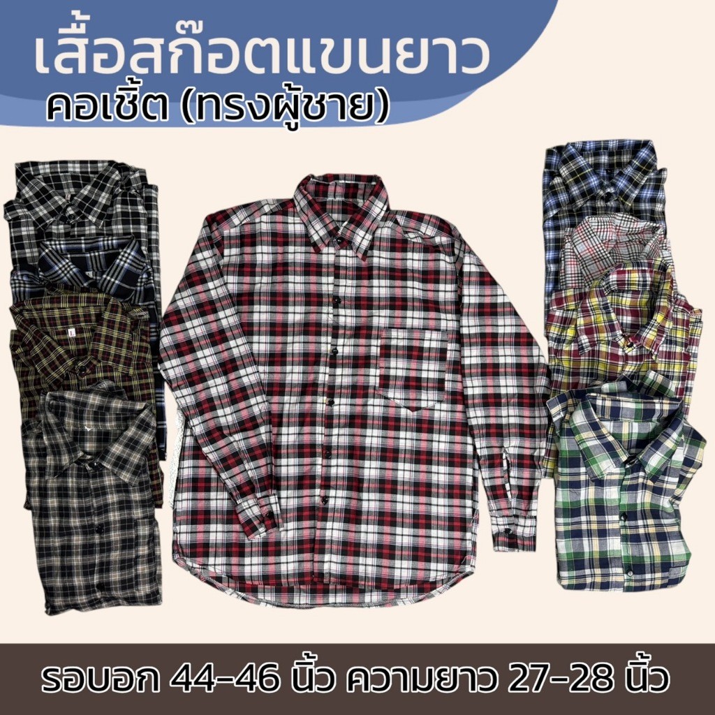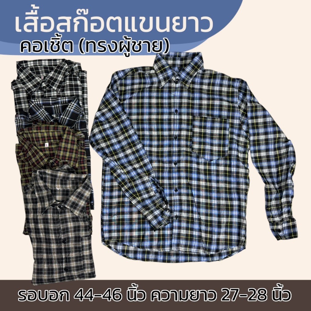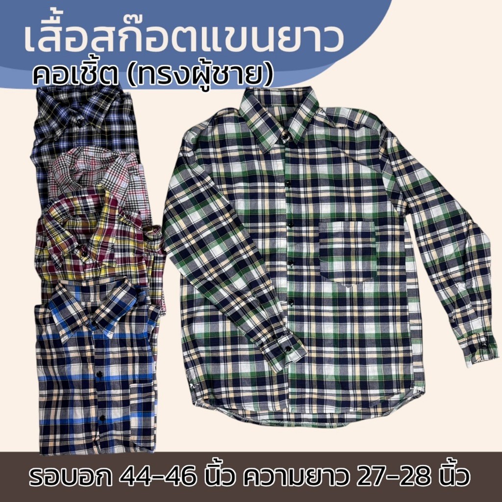 เสื้อลายสก็อต แขนยาว ทรงผู้หญิง แม่บ้าน ทำงาน ใส่ทำงาน เนื้อผ้าดี ผ้าบาง ผ้าทีซี K06