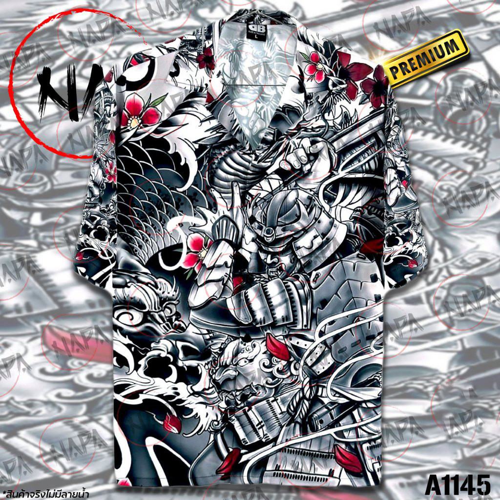 เสื้อฮาวาย ซามูไรง้างดาบซากุระ A1145