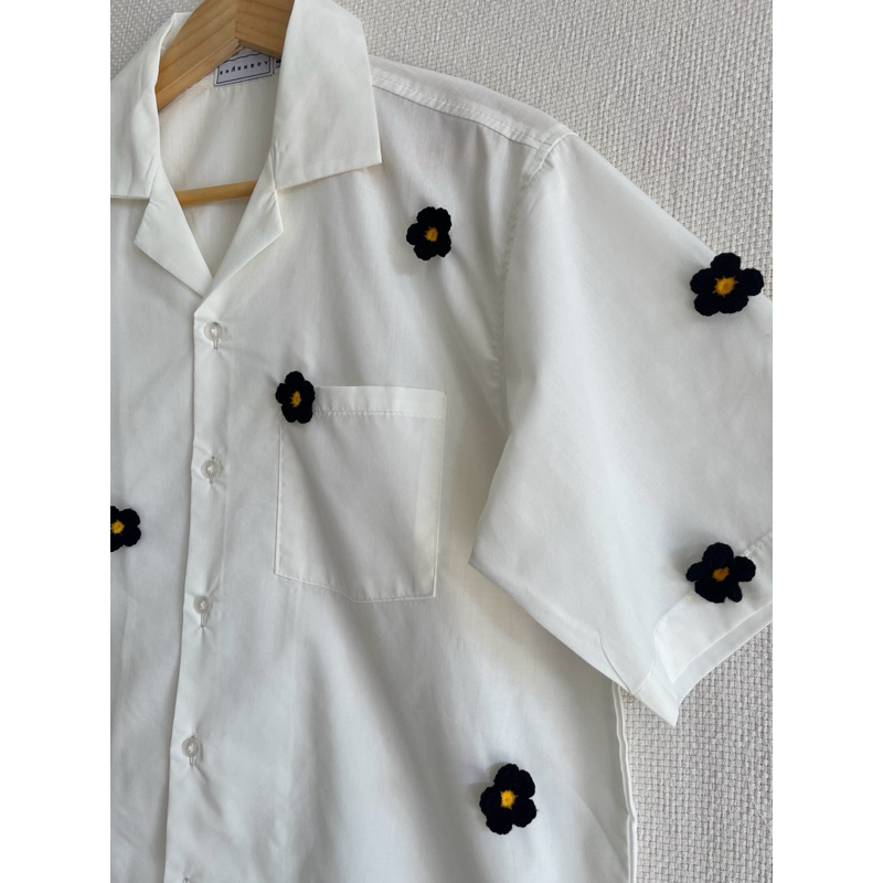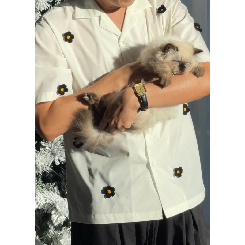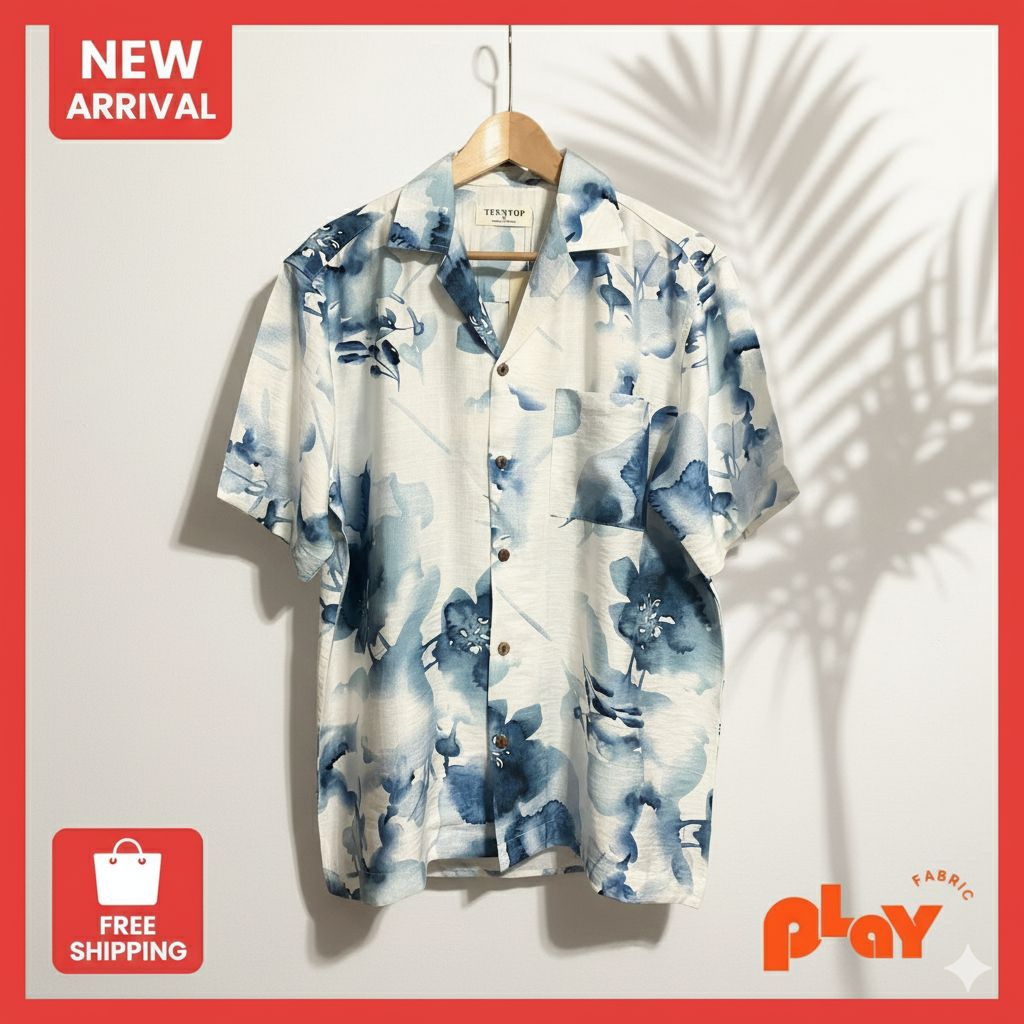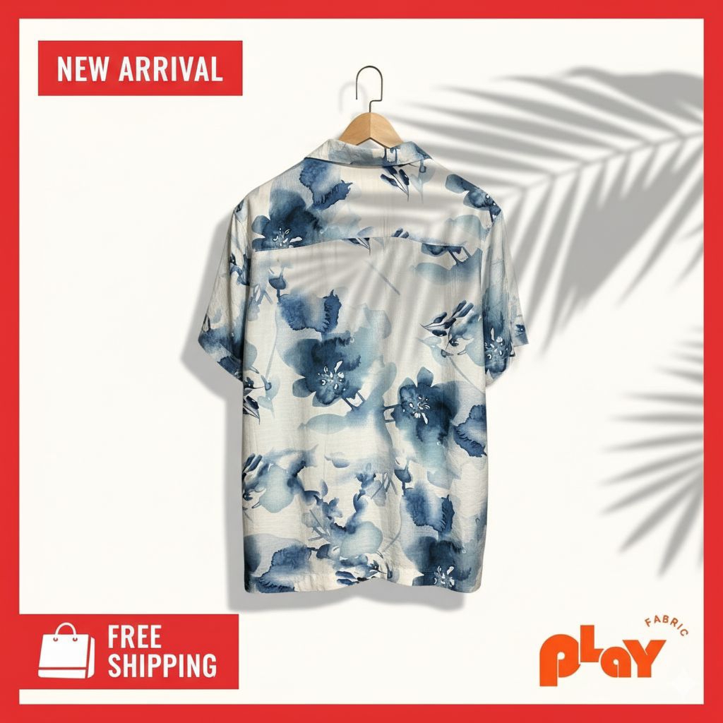 เสื้อฮาวาย ผ้าไหมฝรั่งเศส ลายสีน้ำดอกไม้น้ำเงิน Splash and Flower ใส่สบาย ระบายอากาศดี
