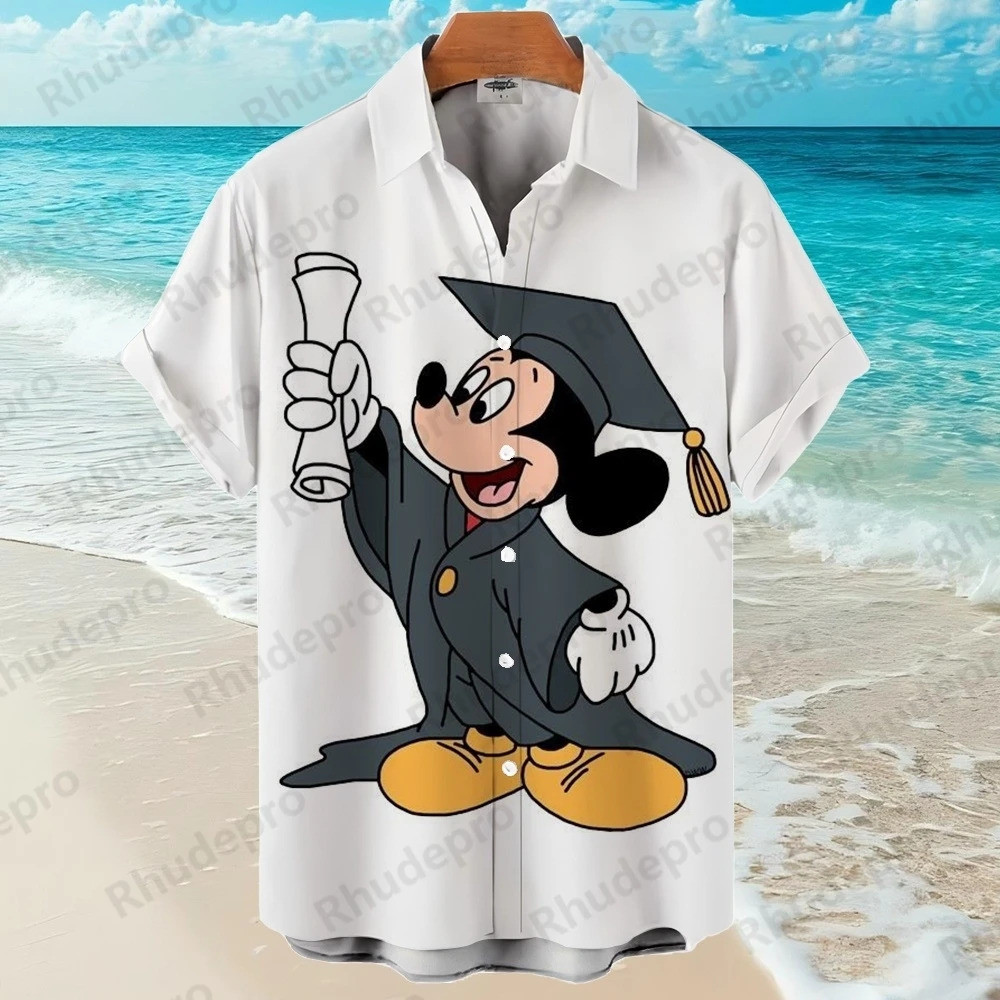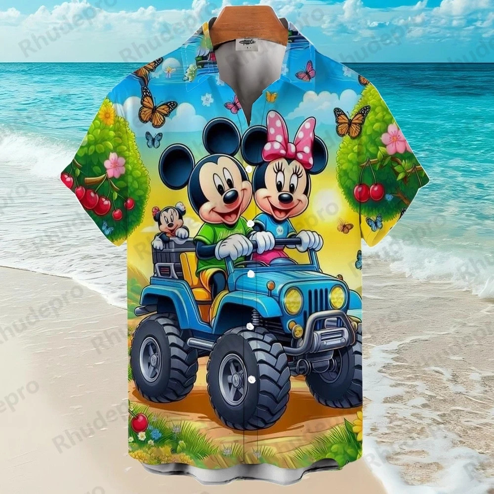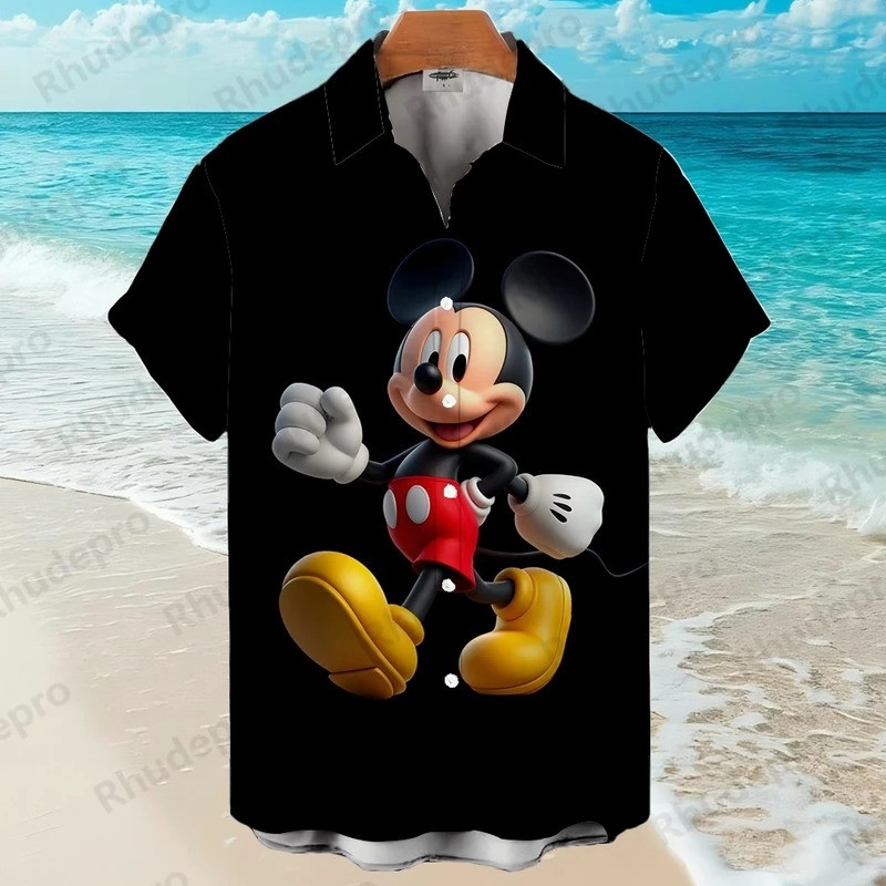 เสื้อฮาวายแขนสั้นผู้ชาย ดิสนีย์ มิกกี้เมาส์ ของสะสมใหม่ สำหรับชายหาดและฤดูร้อน
