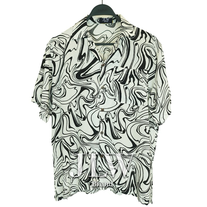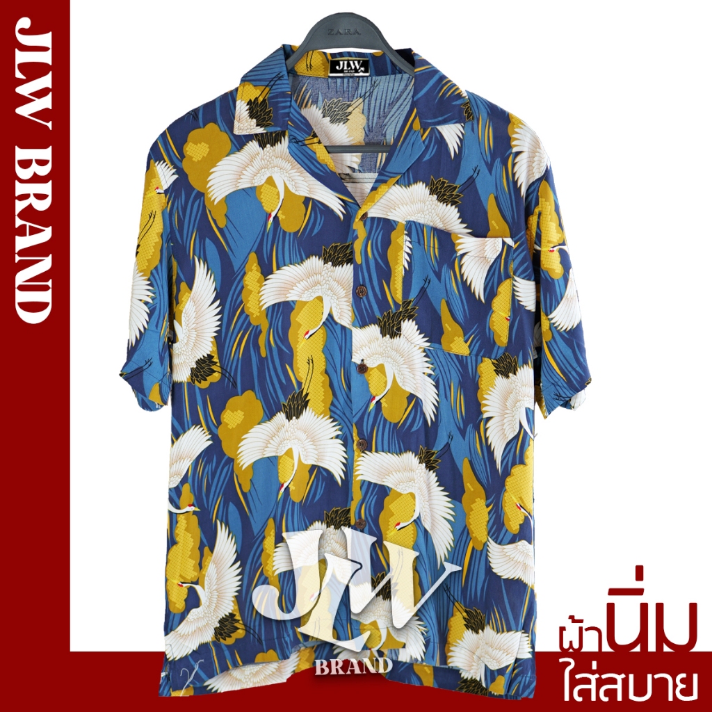 เสื้อฮาวาย ลายทะเลเรือใบน้อย ขาว ผ้านิ่มใส่สบาย JLW BRAND ผ้าเรย่อน