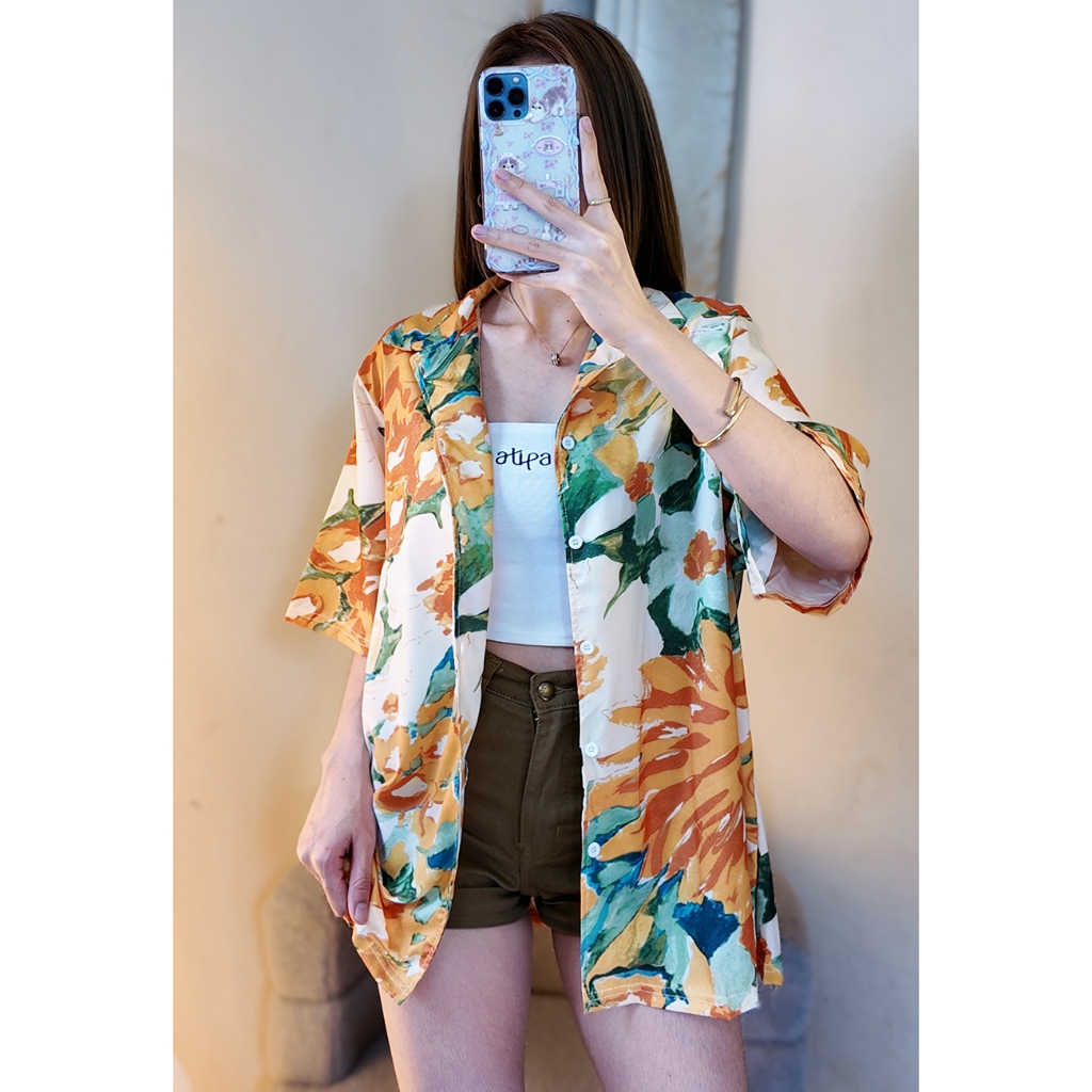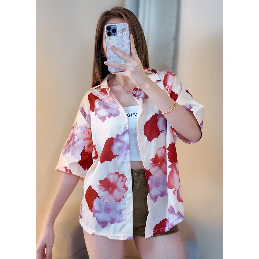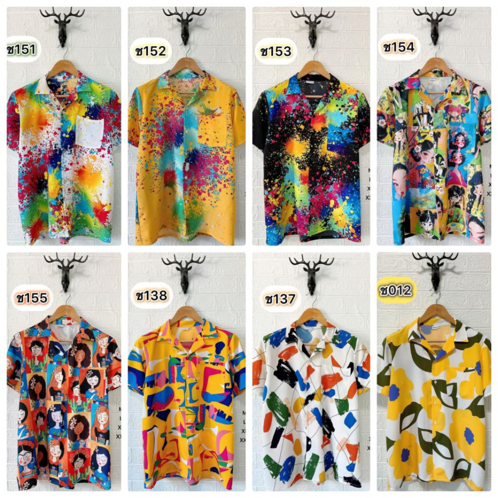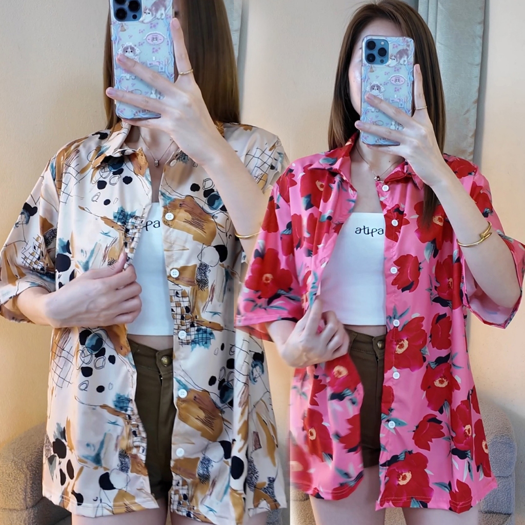 เสื้อฮาวาย เสื้อเชิ้ตสงกรานต์ลายดอกไม้ รวม 9 ลาย hawaii สไตล์เกาหลี ผ้าลื่น ใส่สบาย 🚚พร้อมจัดส่ง🚚