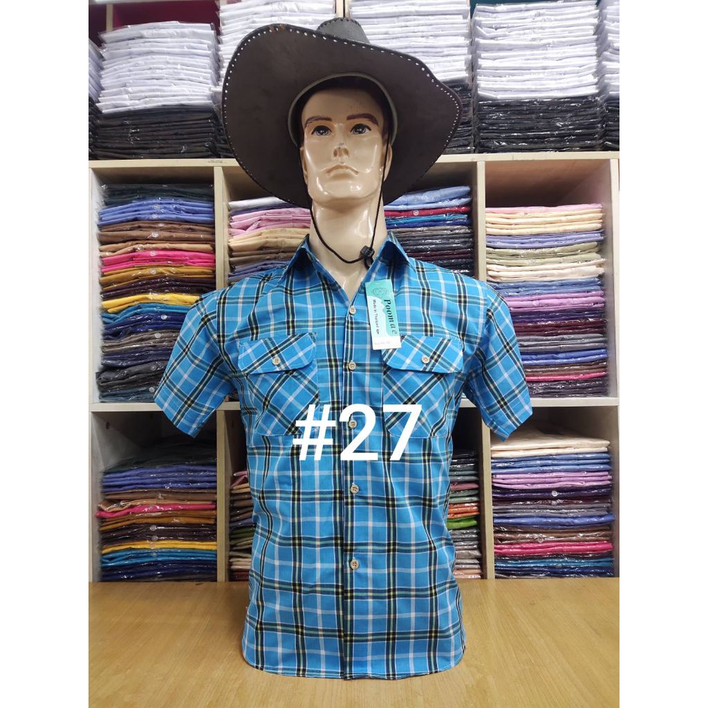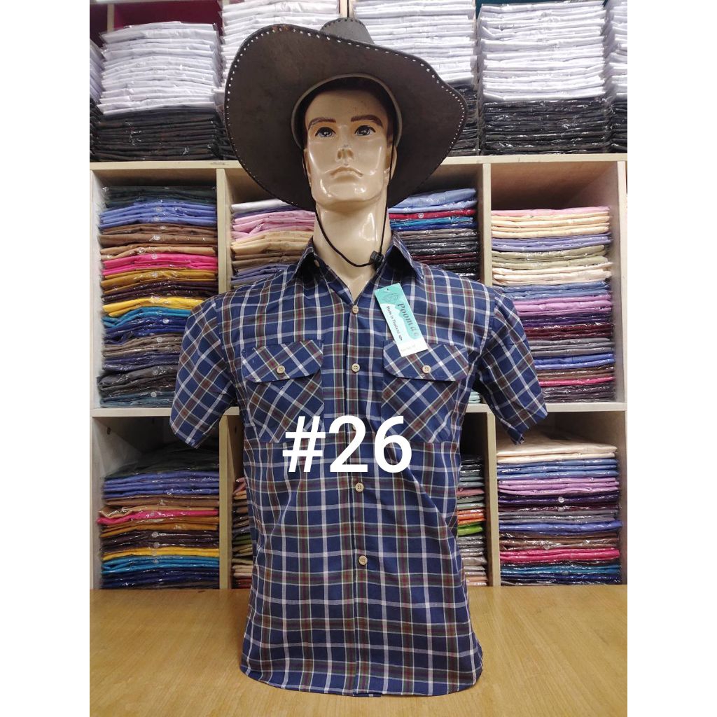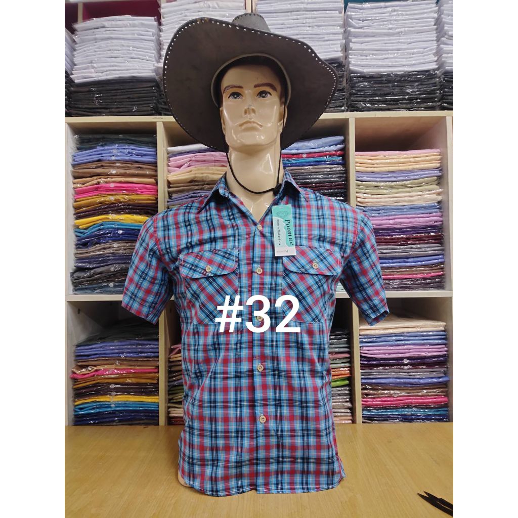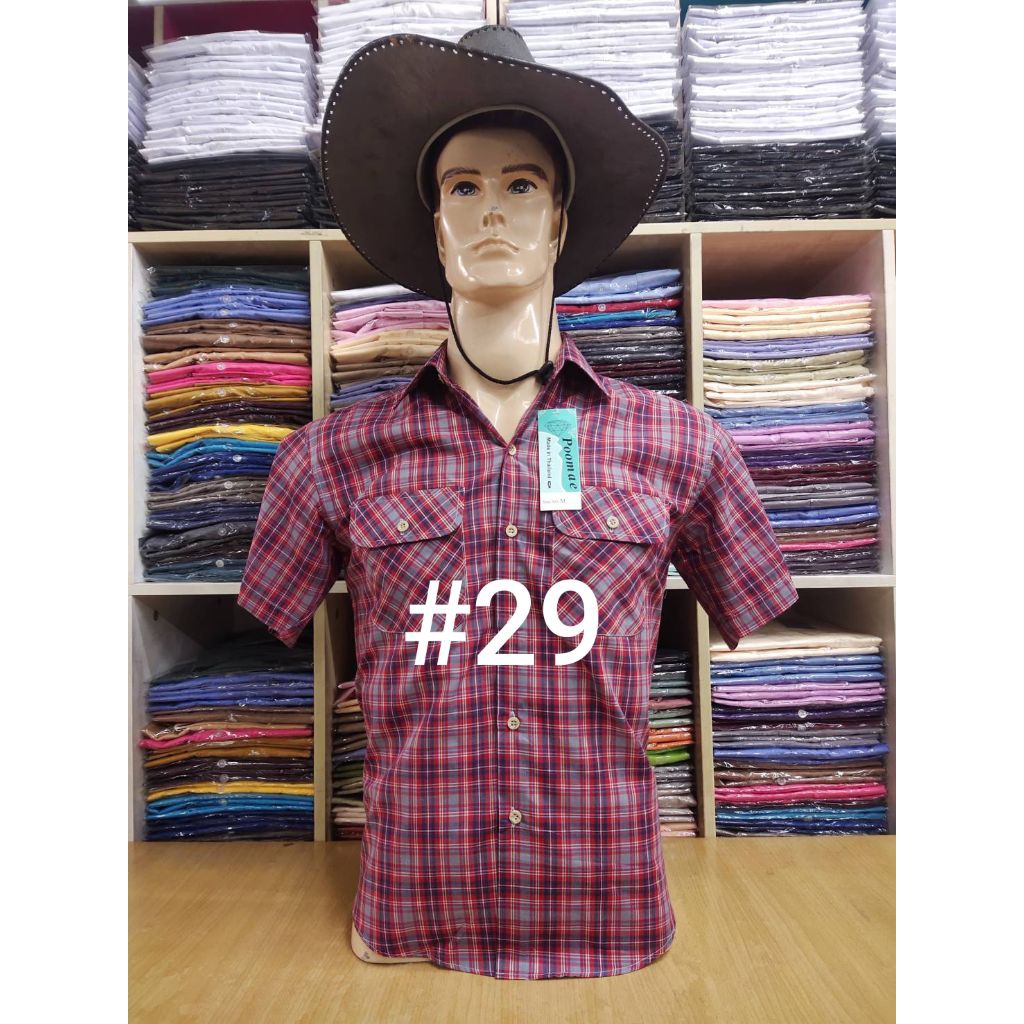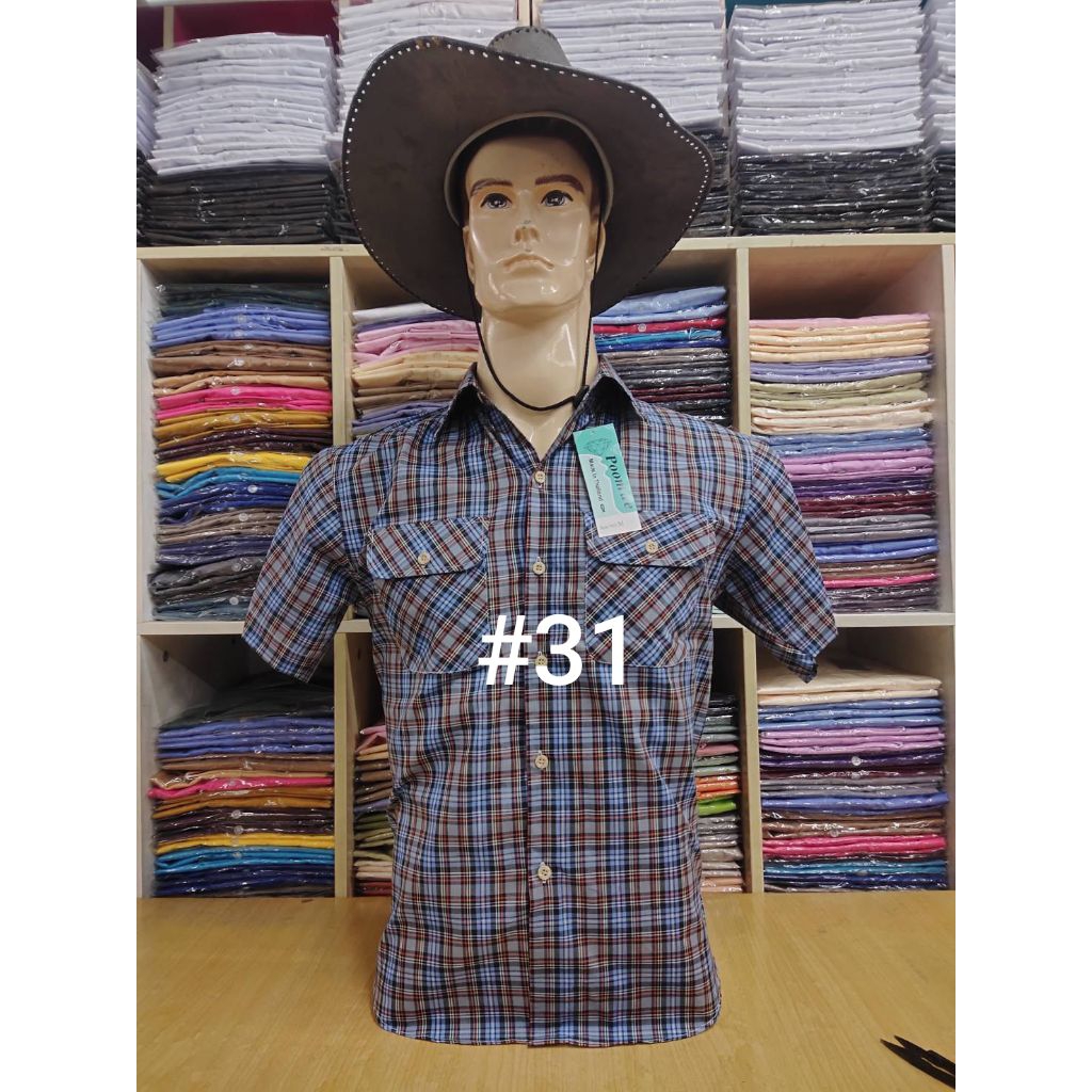 เสื้อเชิ้ต 2กระเป๋า แขนสั้น ตาสก๊อต สินค้าไทย มีทั้งหมด 44 สี