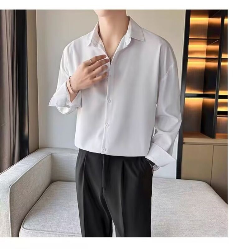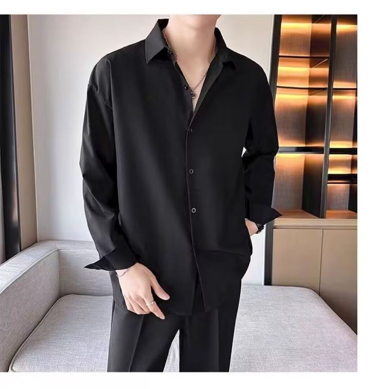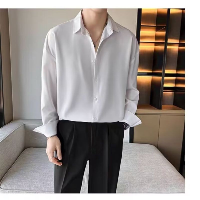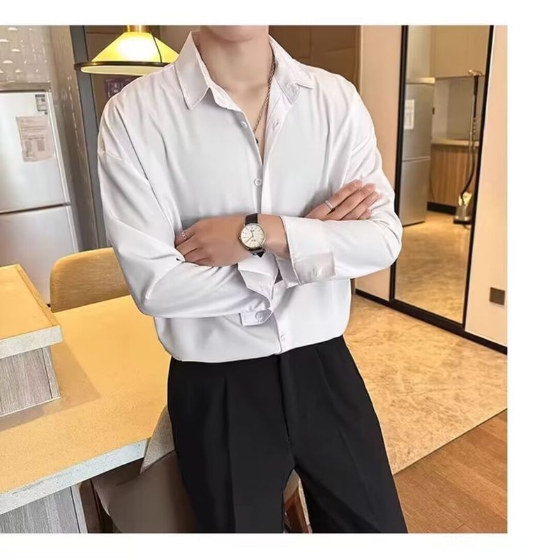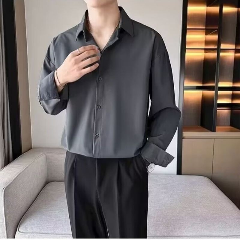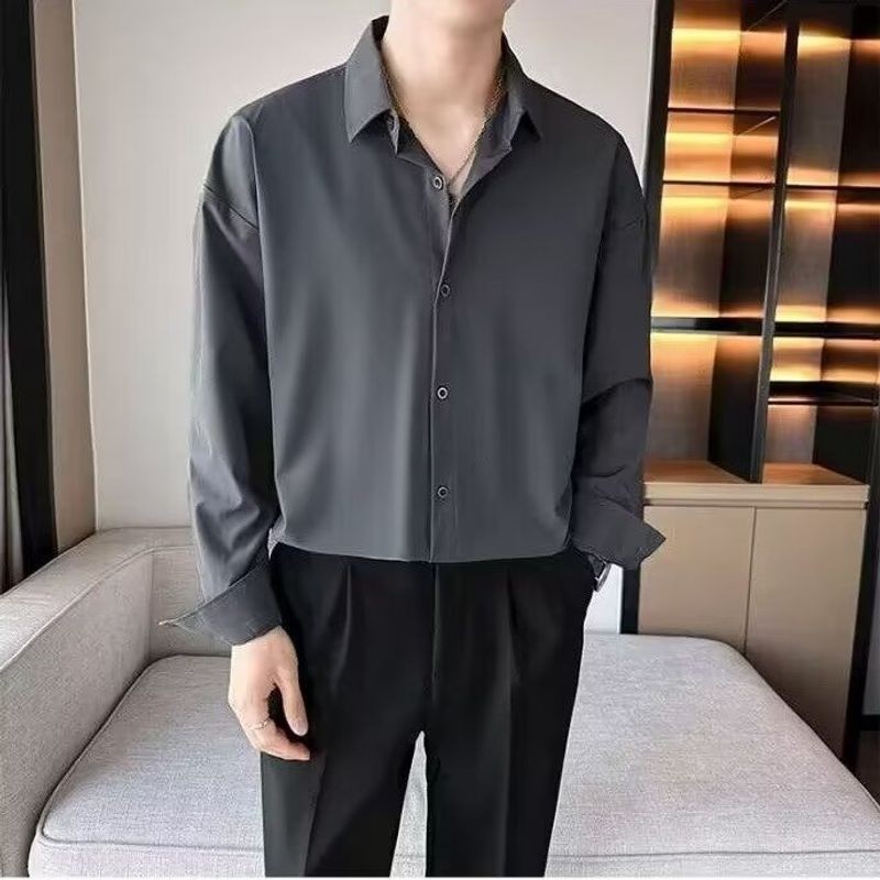 เสื้อเชิ้ตเอร์เชนชิผู้ชาย สไตล์หรูหรา เนื้อผ้าเรียบ สวมได้ทั้งทำงานและพักผ่อน