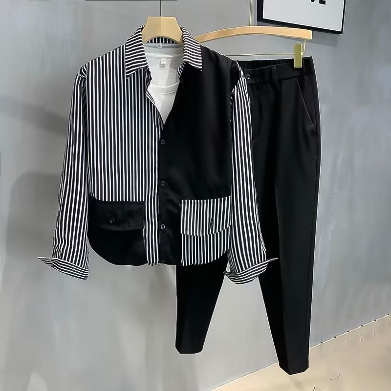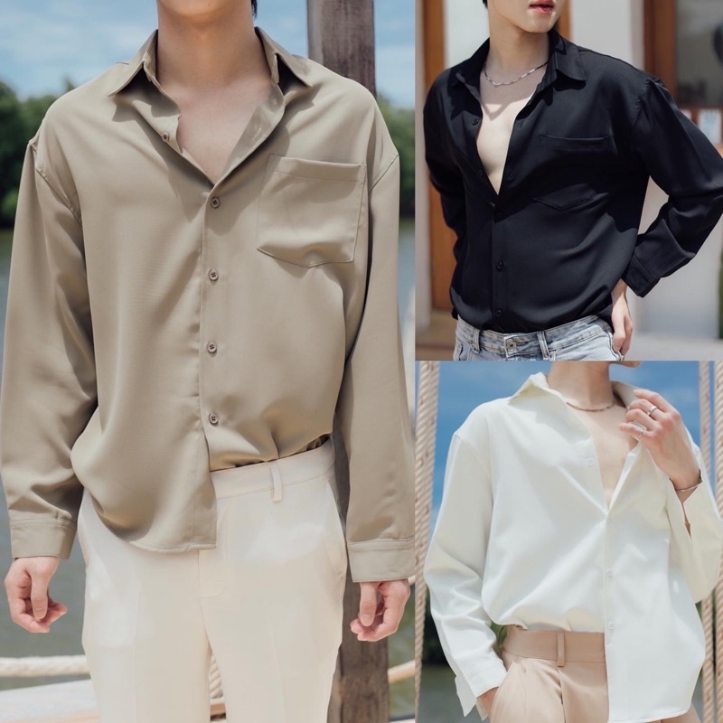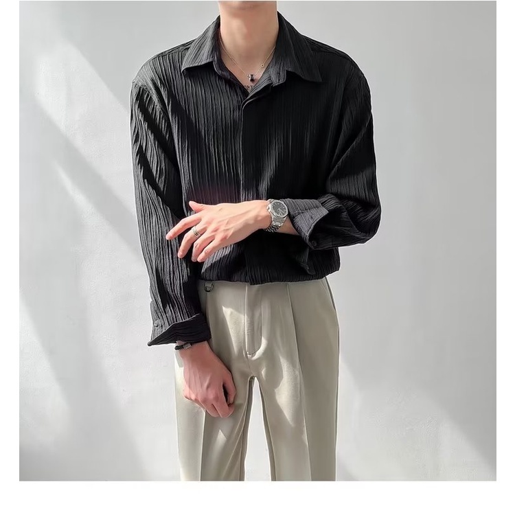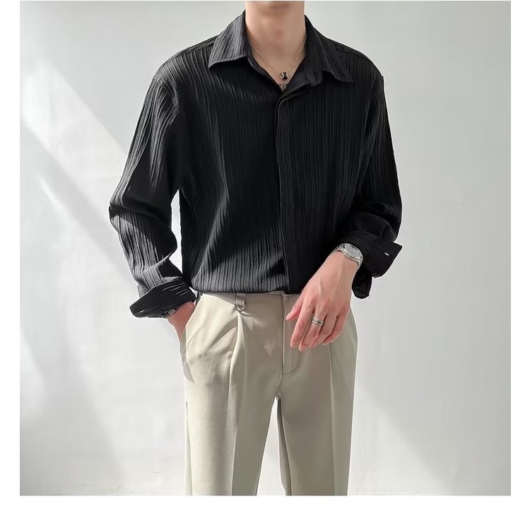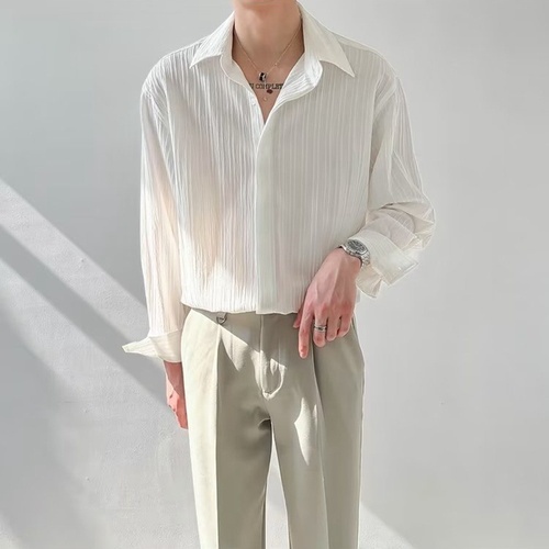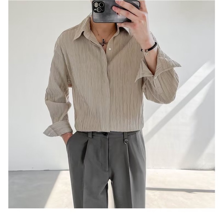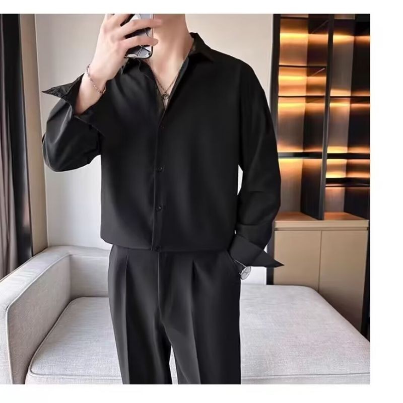 เสื้อเชิ้ตเอร์เชนชิผู้ชาย สไตล์หรูหรา เนื้อผ้าเรียบ สวมได้ทั้งทำงานและพักผ่อน