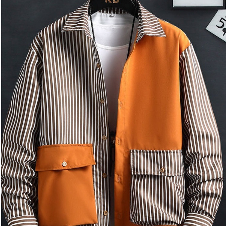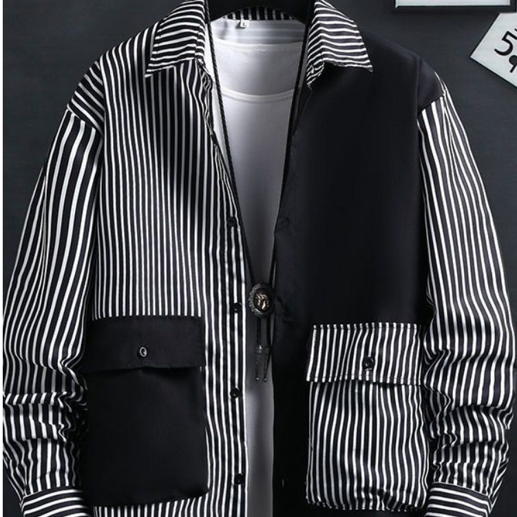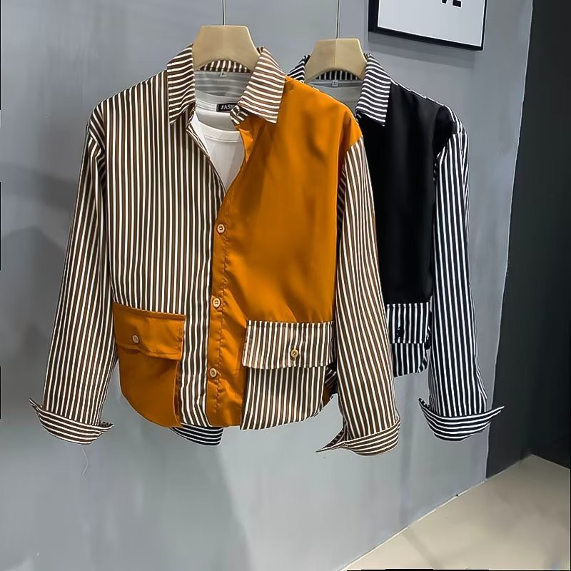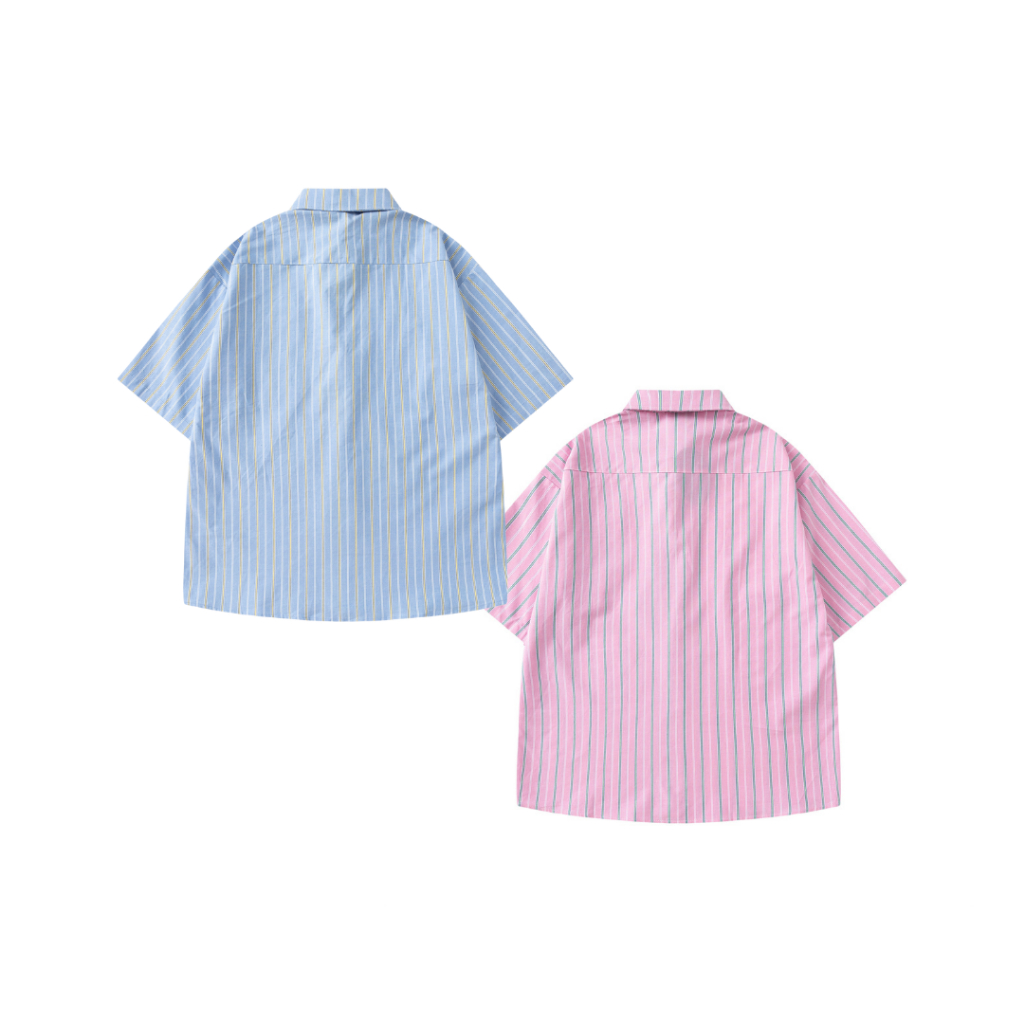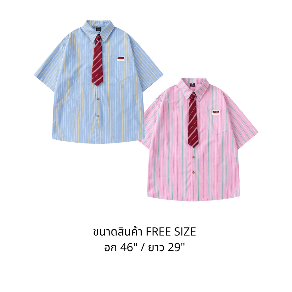 เสื้อเชิ้ตลายแฟชั่นเกาหลี ลายทางตรงสลับสีทูโทน มี 2 สีให้เลือก