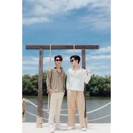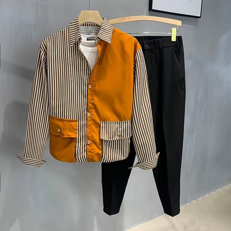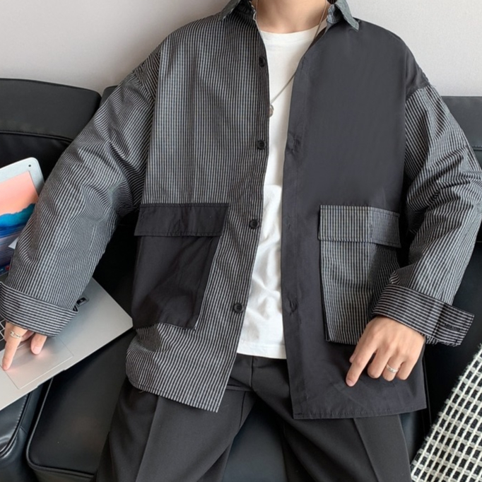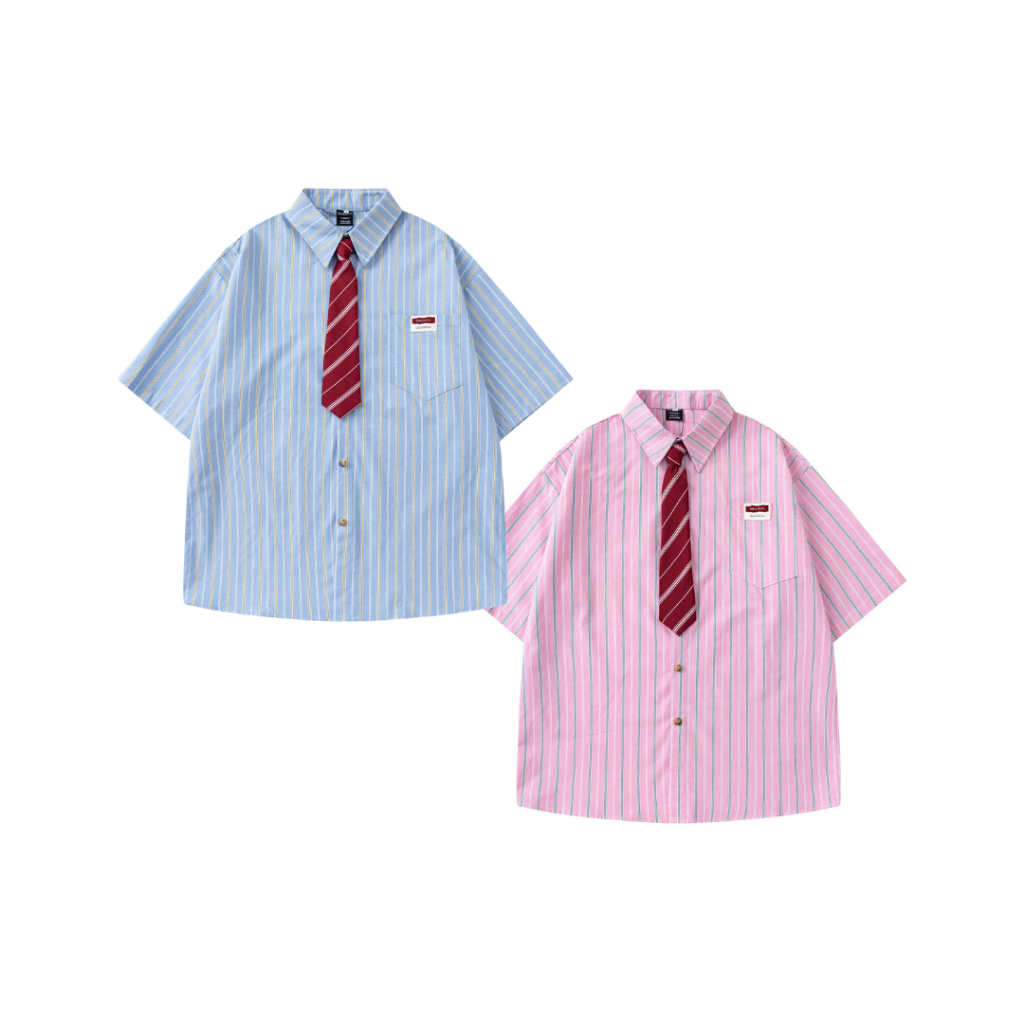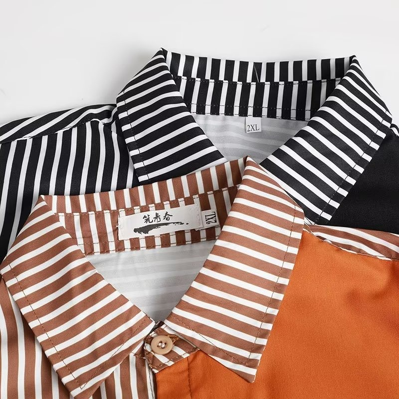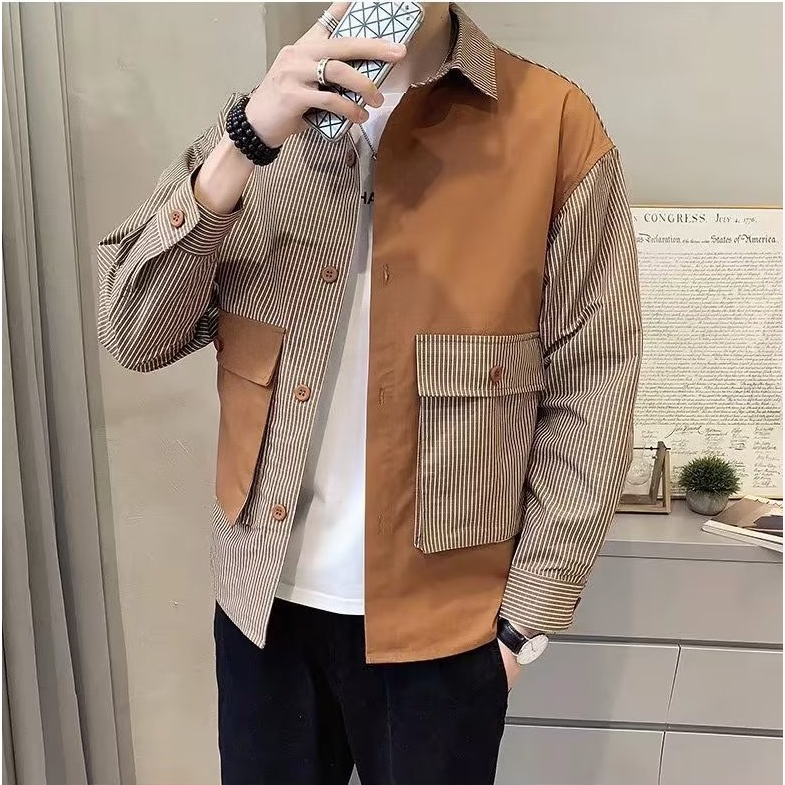 เสื้อเชิ้ตลายแฟชั่นเกาหลี ลายทางตรงสลับสีทูโทน มี 2 สีให้เลือก