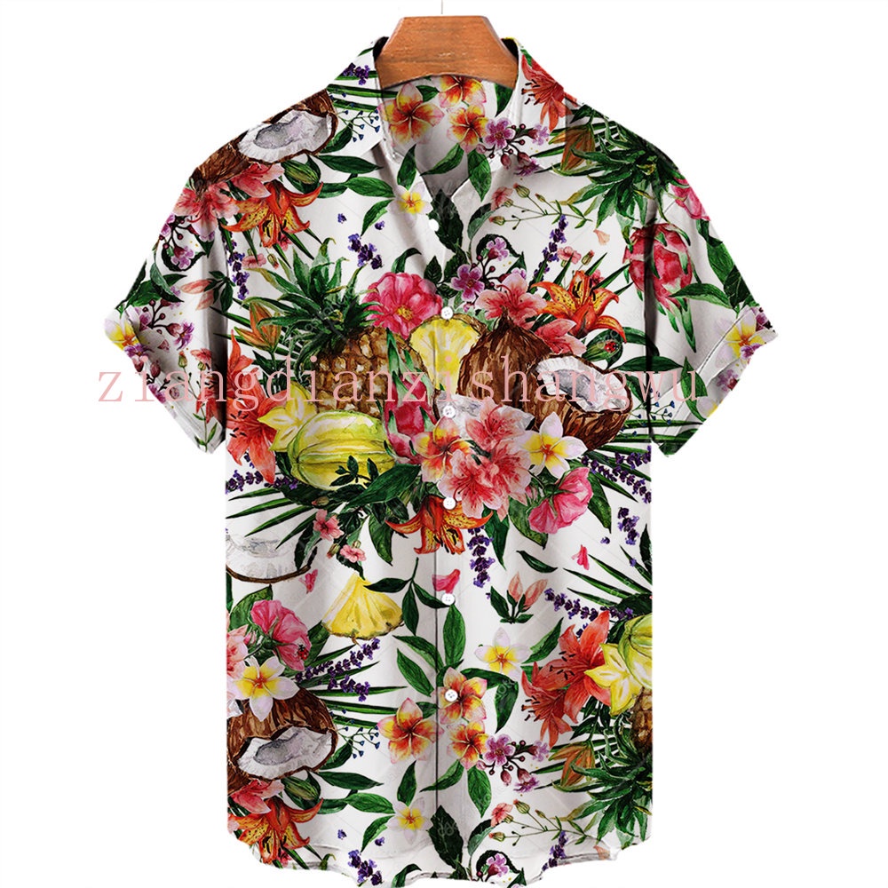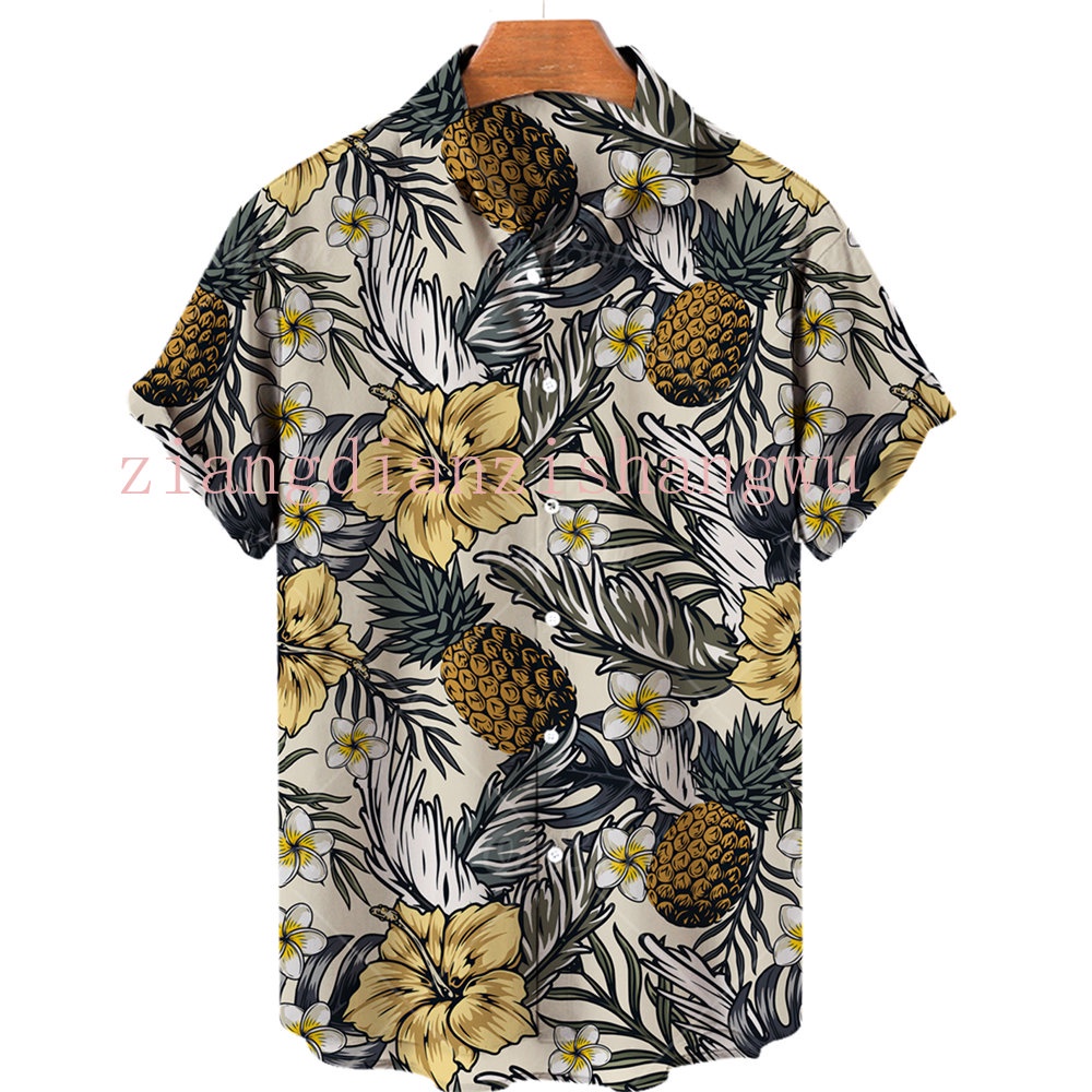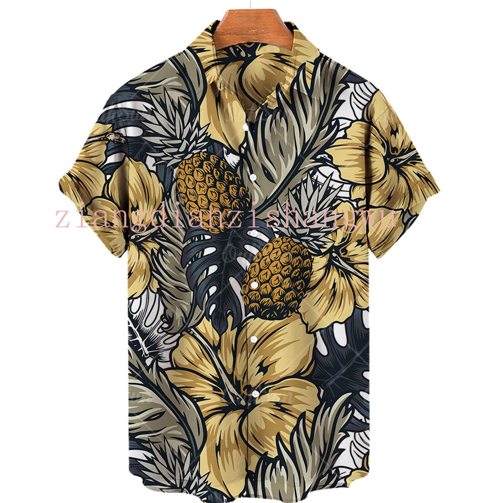 เสื้อเชิ้ตฮาวาย แขนสั้น พิมพ์ลายผลไม้ สับปะรด ทรงหลวม แฟชั่นฤดูร้อน สําหรับผู้ชาย