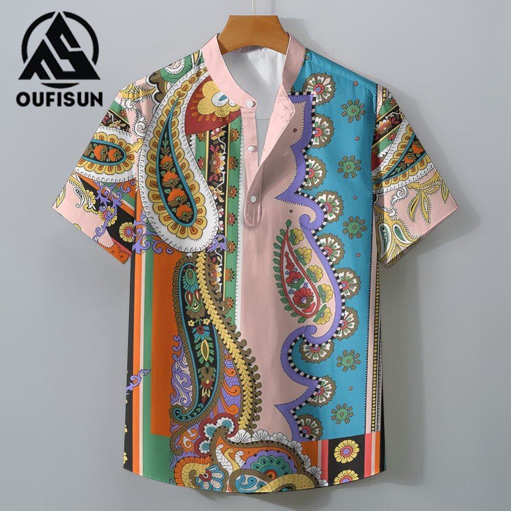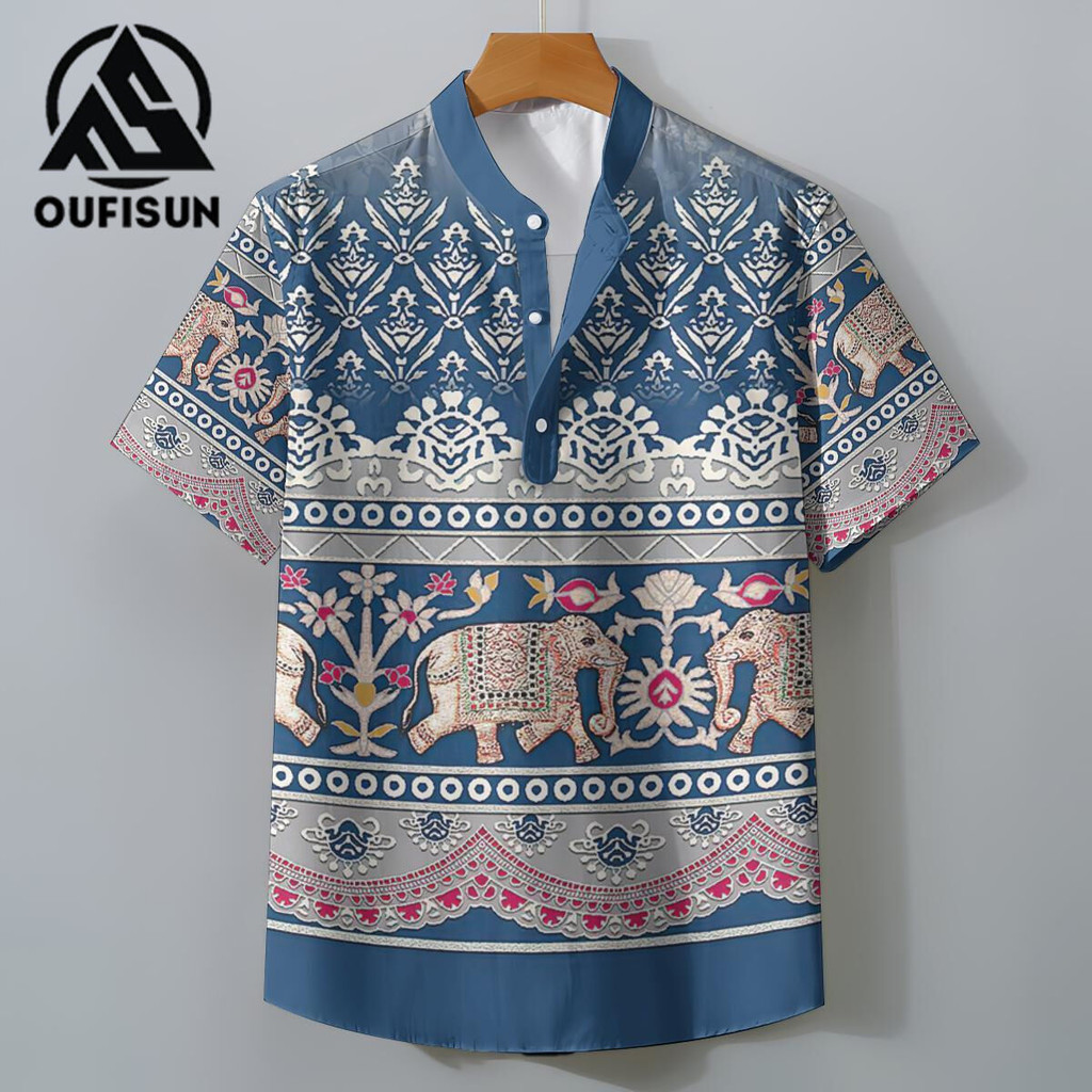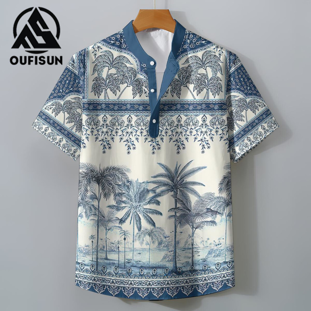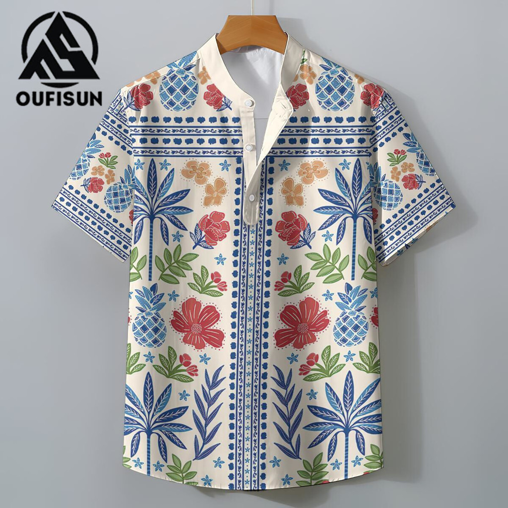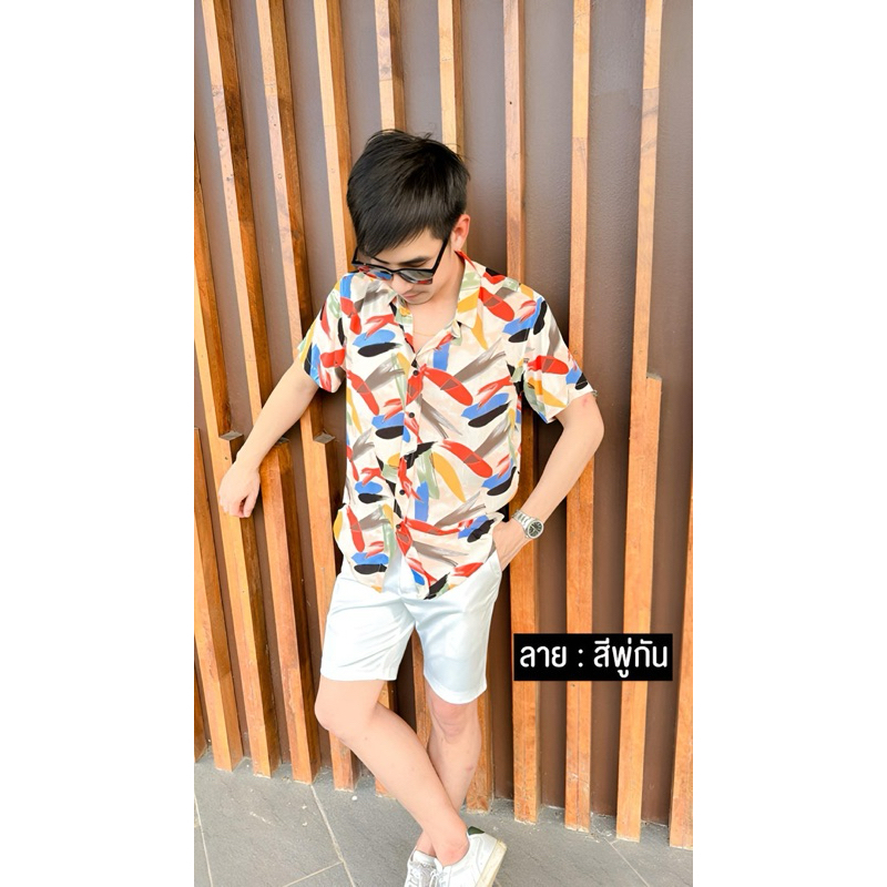 เสื้อเชิ้ตฮาวายแขนสั้นชาย เสื้อเชิ้ตโบฮีเมียน เสื้อเชิ้ตคอตั้ง
