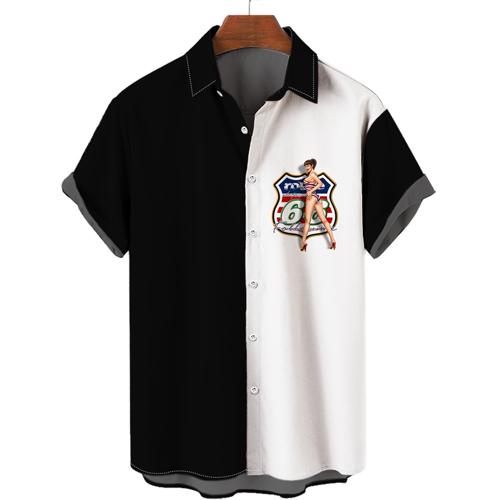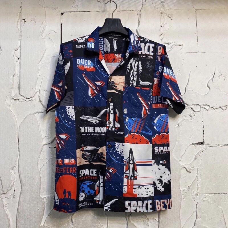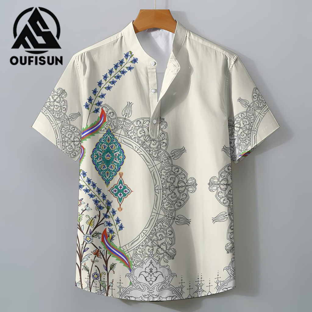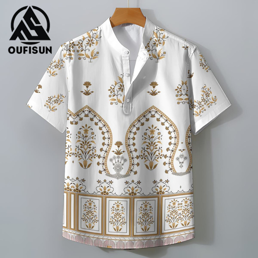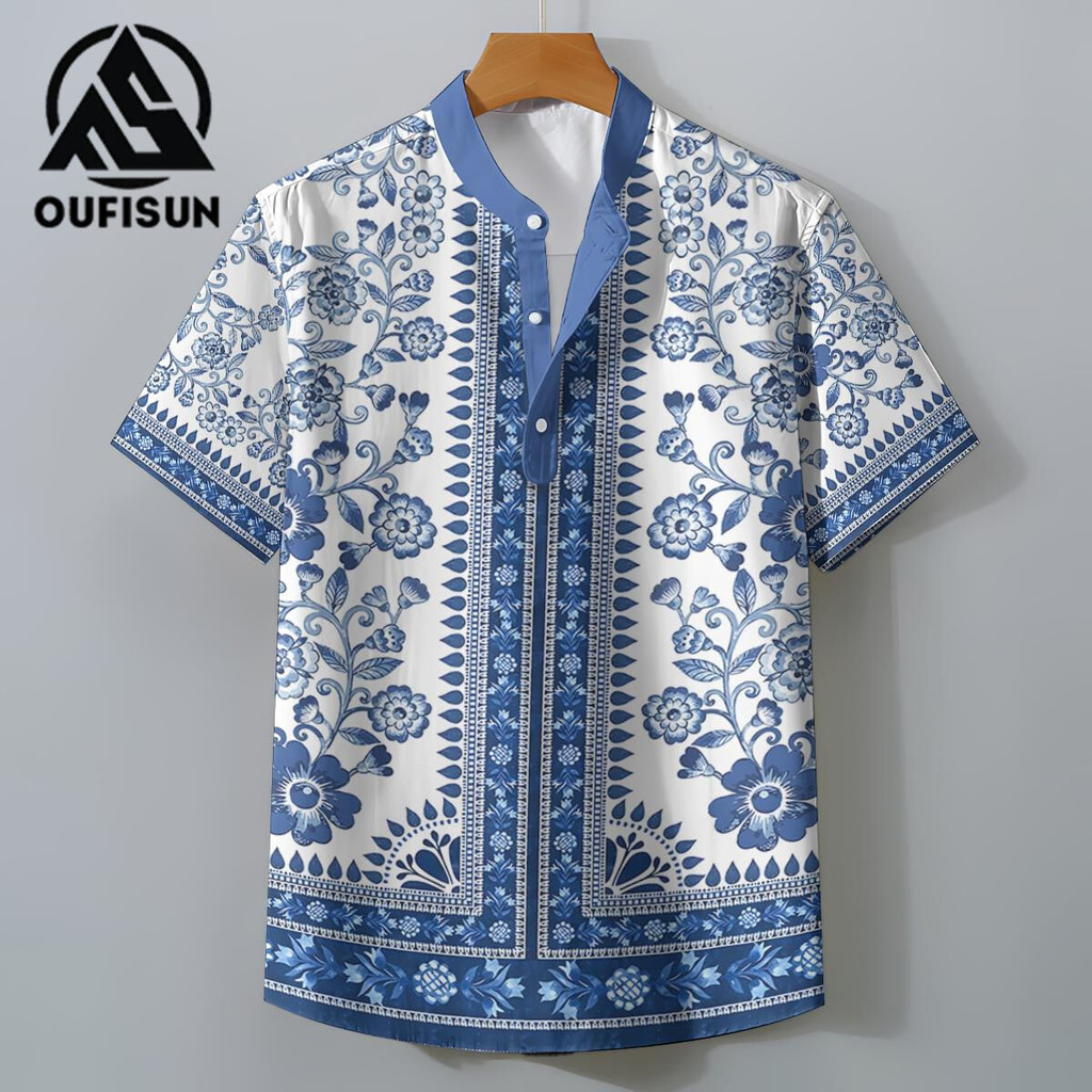 เสื้อเชิ้ตฮาวายแขนสั้นชาย เสื้อเชิ้ตโบฮีเมียน เสื้อเชิ้ตคอตั้ง