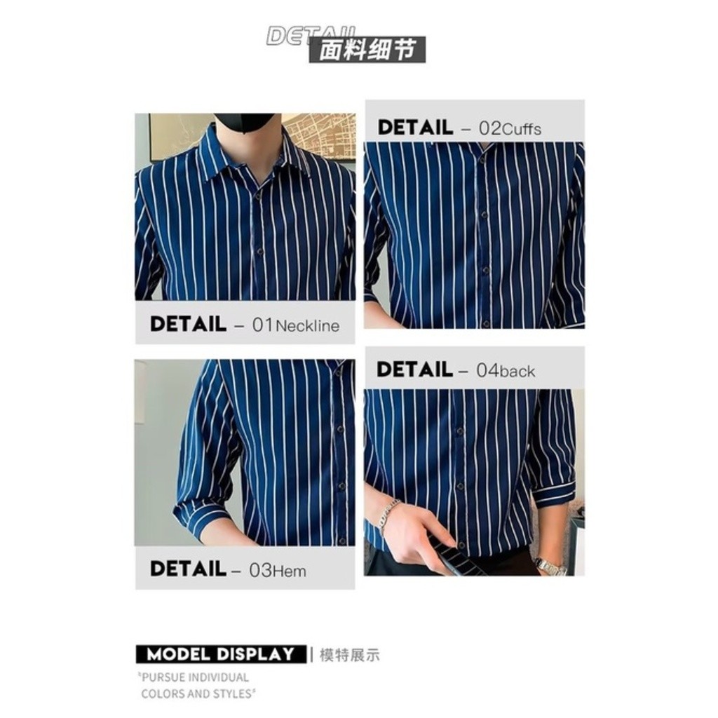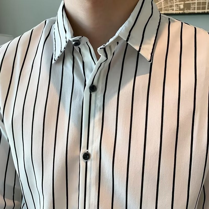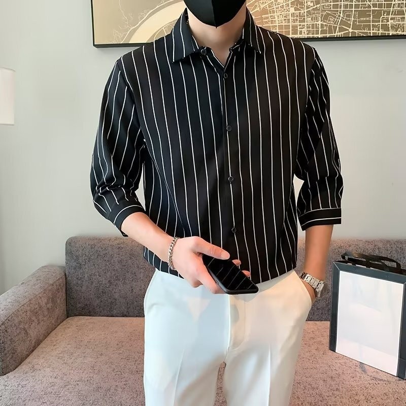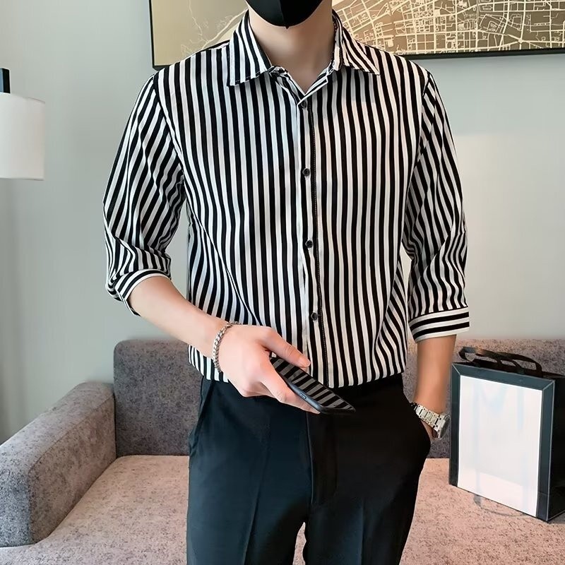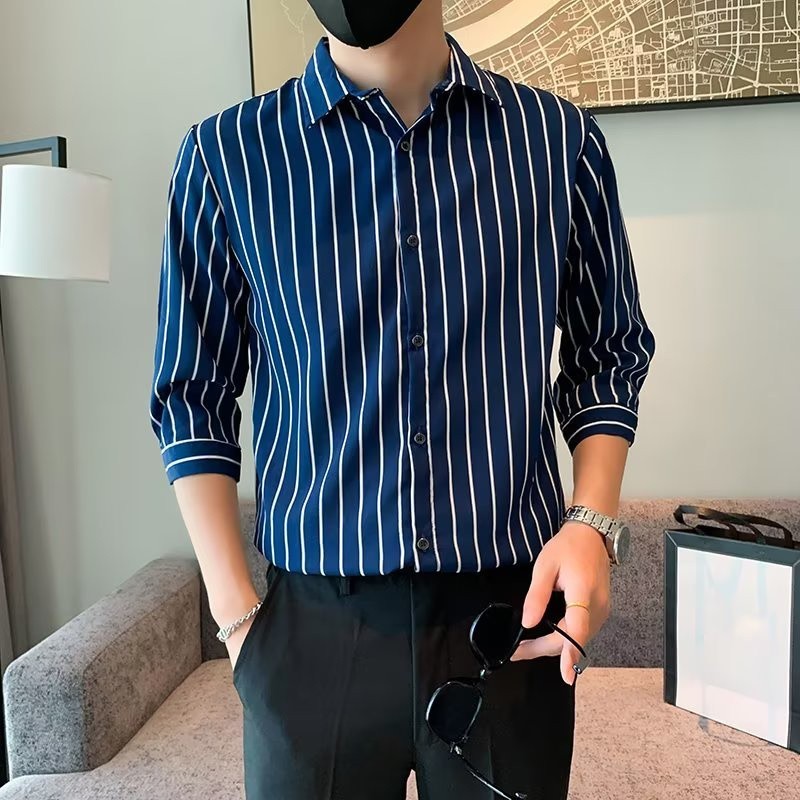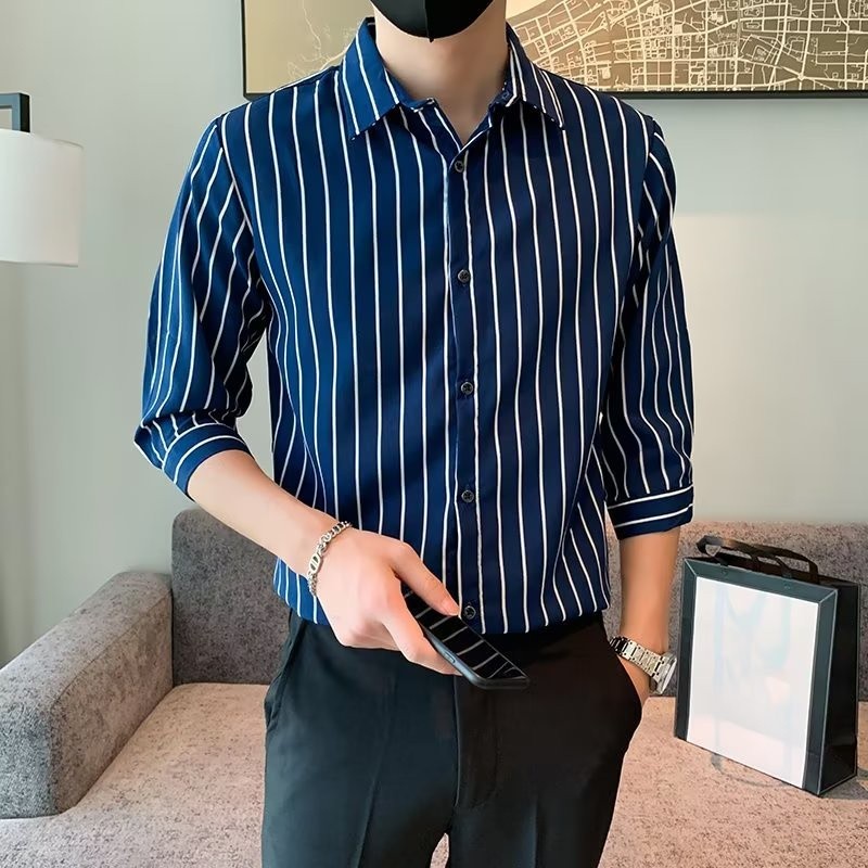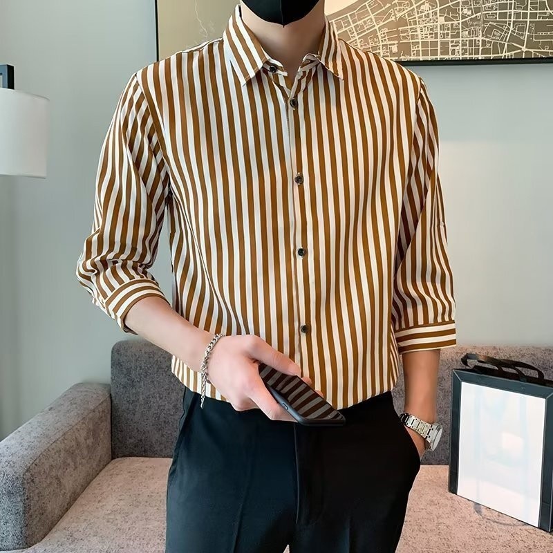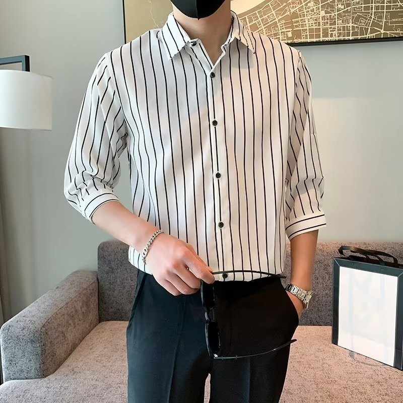 เสื้อเชิ้ตแขน 3/4 ลําลอง ลายทาง สไตล์เกาหลี เหมาะกับฤดูร้อน สําหรับผู้ชาย
