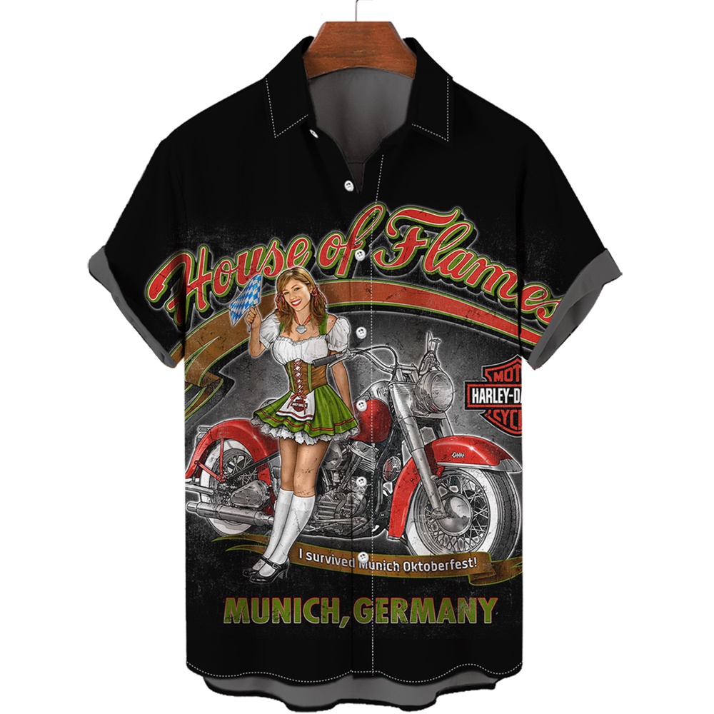 เสื้อเชิ้ตฮาวาย พิมพ์ลายรถจักรยานยนต์ Hd สไตล์วินเทจ ฮาวาย แนวสตรีท สําหรับผู้ชาย ไซซ์ 5XL