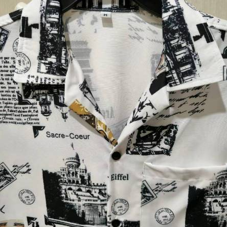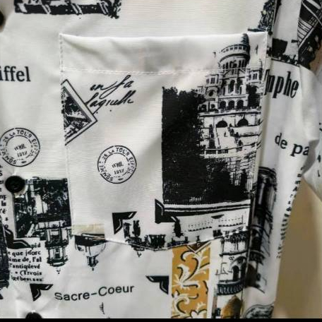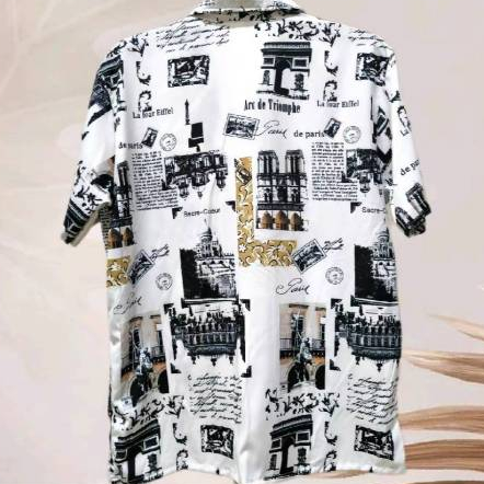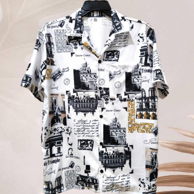 เสื้อเชิ้ตฮาวาย ลายวินเทจปารีส (พื้นสีขาว) ผ้าไหมอิตาลี