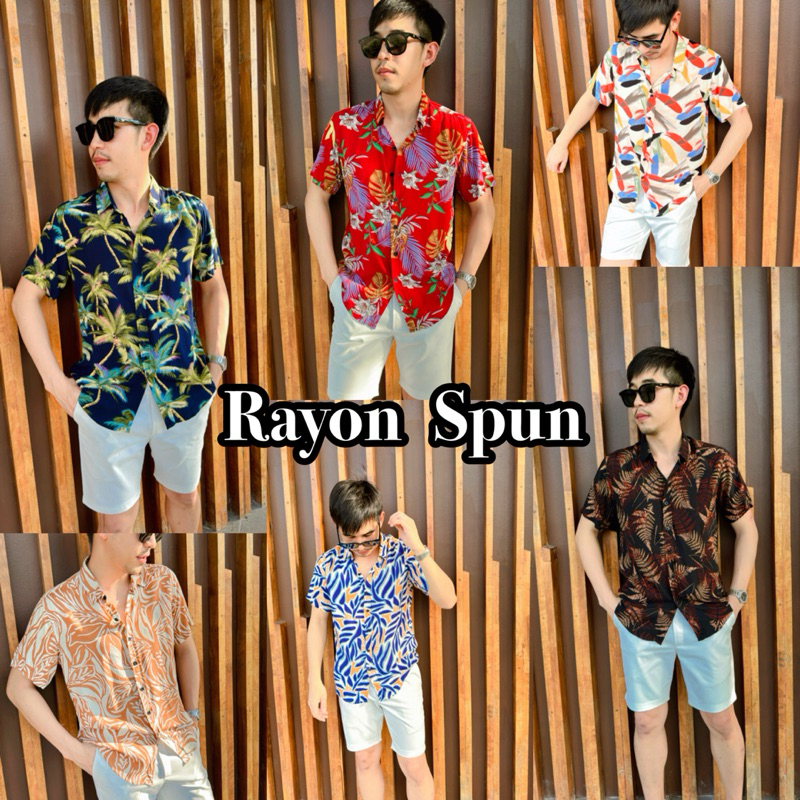 เสื้อเชิ้ตสปันเรยอนผ้าพรีเมี่ยม ลายดอกไม้ ผ้านุ่มนิ่มเบา แห้งง่าย ใส่สบายระบายอากาศ