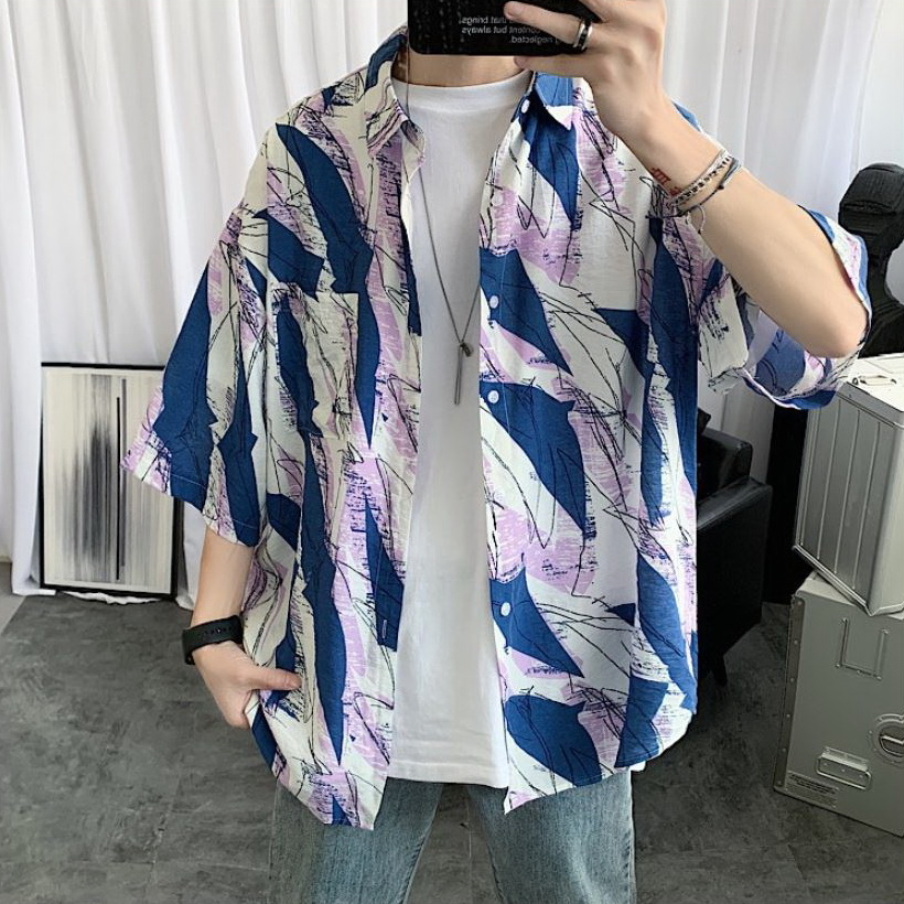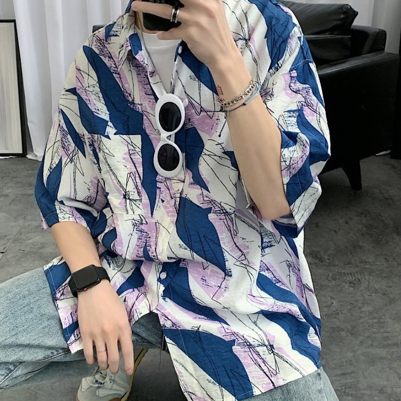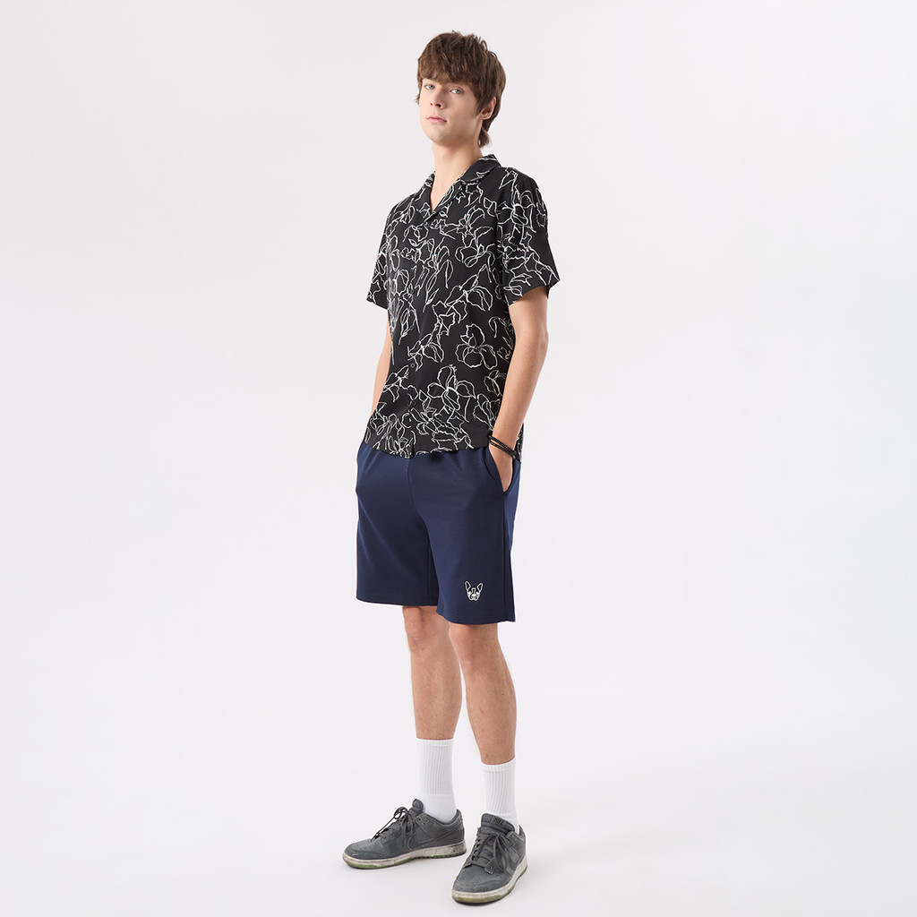 ELLE HOMME | เสื้อเชิ้ตแขนสั้น คอปกเชิ้ต ทรงโอเวอร์ไซซ์ สวมใส่สบาย ปักโลโก้ EH สีชมพู | W8B670