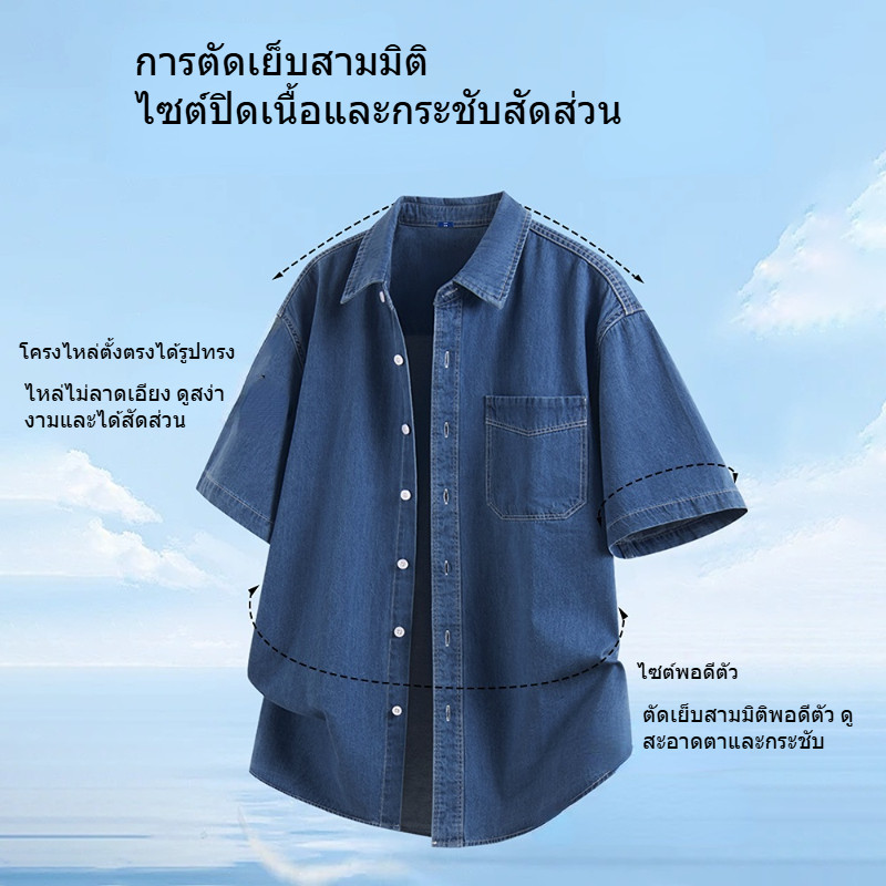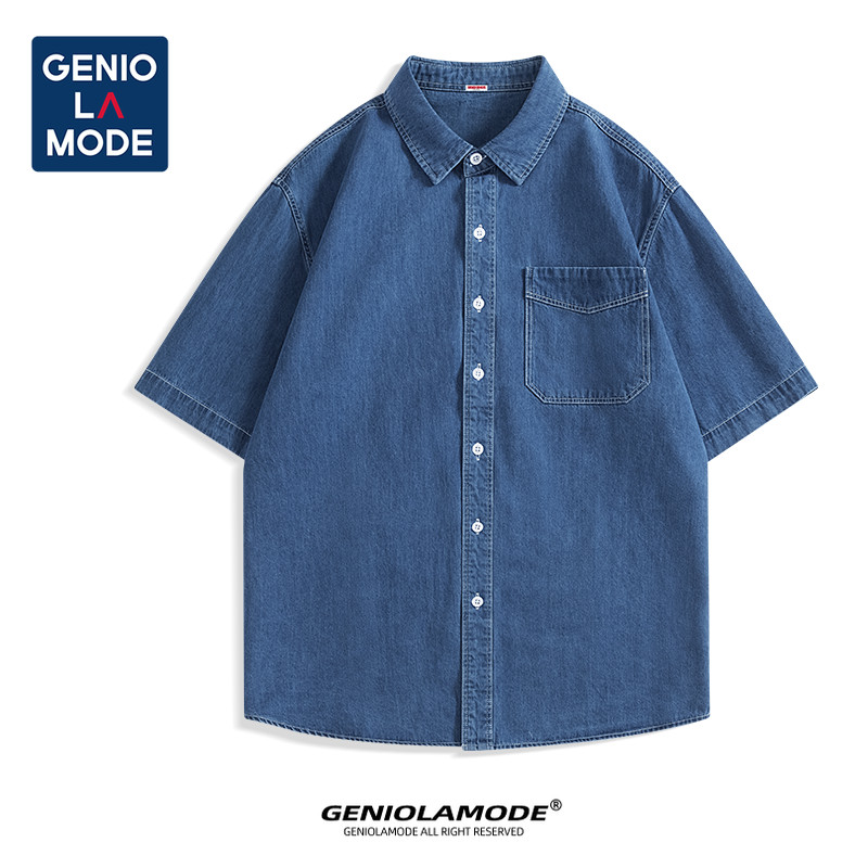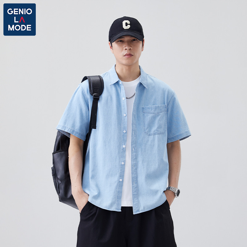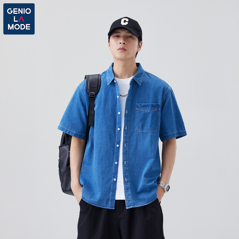 GENIO LAMODE เสื้อเชิ้ตยีนส์แขนสั้น 100% Cotton เกรดพรีเมียม ใส่สบาย ระบายอากาศดี ทรงสวย M-5XL