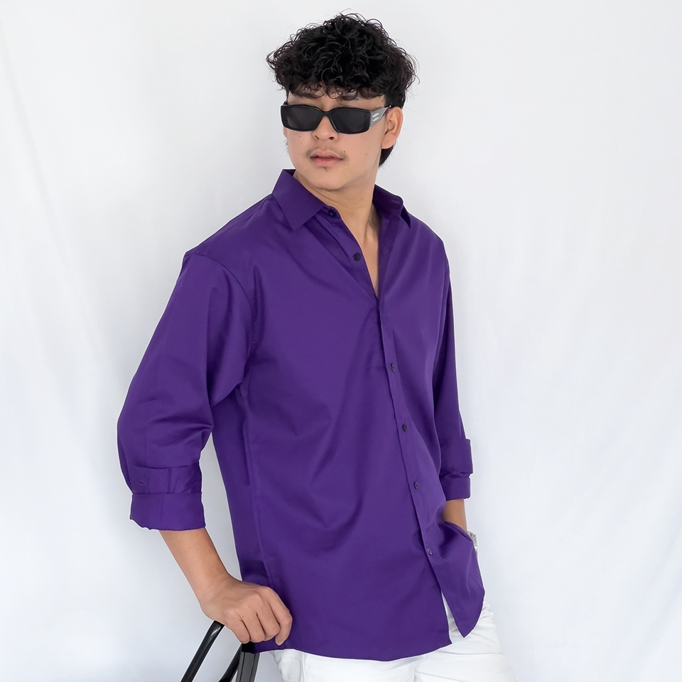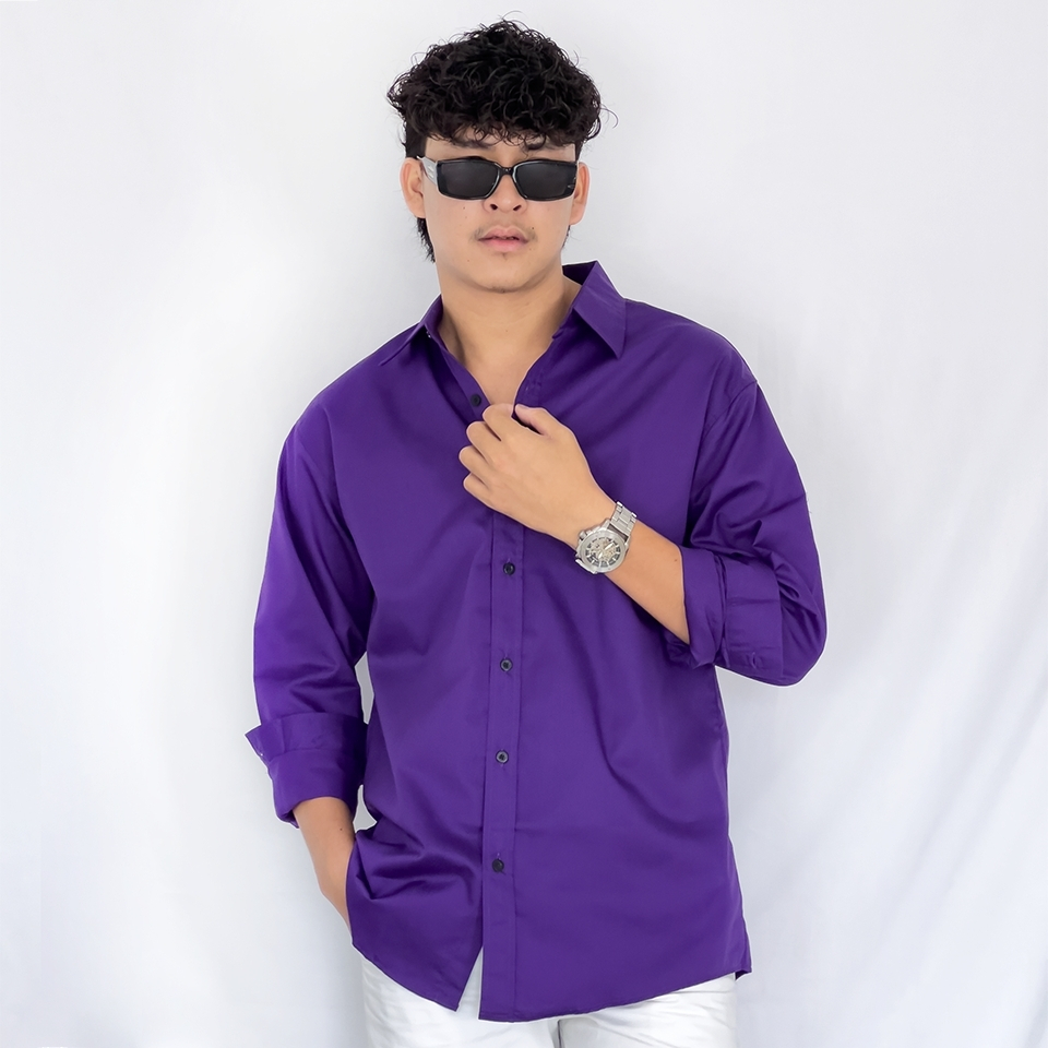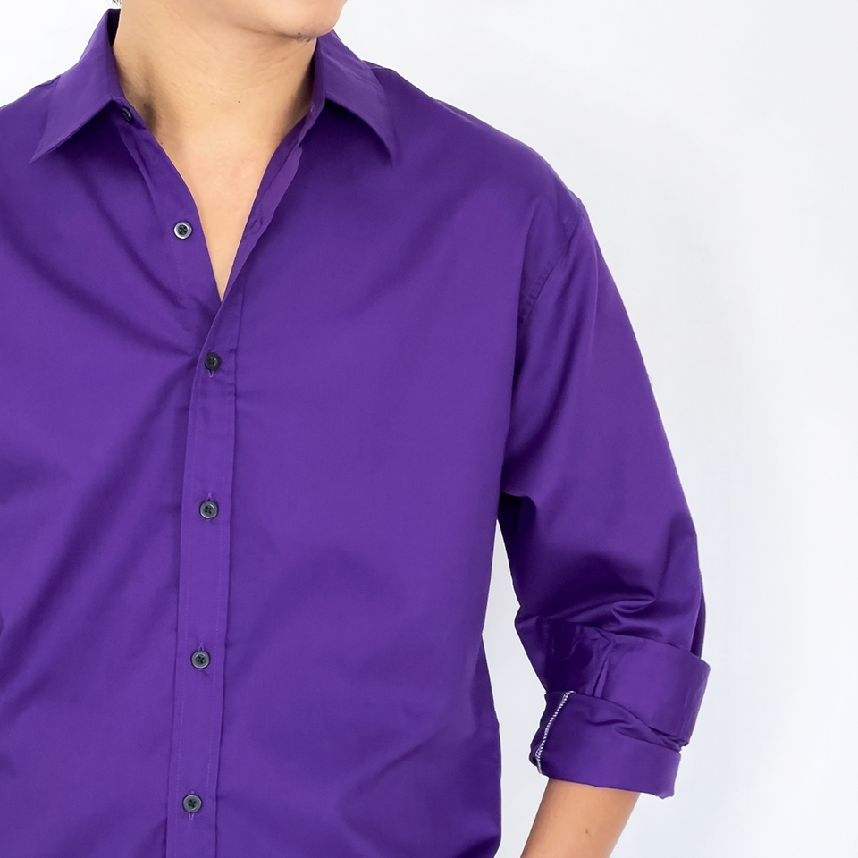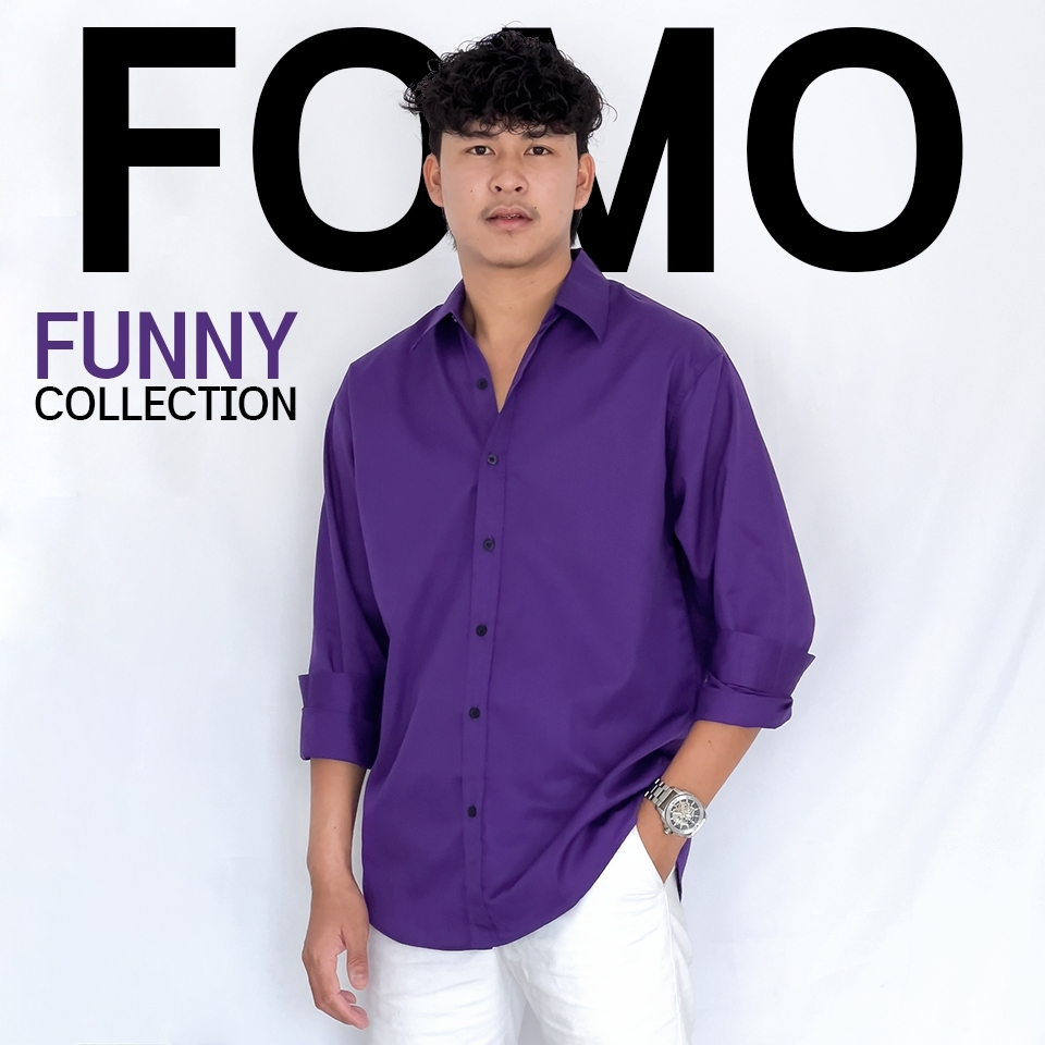 Fomo-เชิ้ตแขนยาว สีม่วงไวโอเลต เสื้อเชิ้ตสีม่วง เสื้อเชิ้ตสีสด เสื้อเชิ้ตคัลเลอร์ฟูล