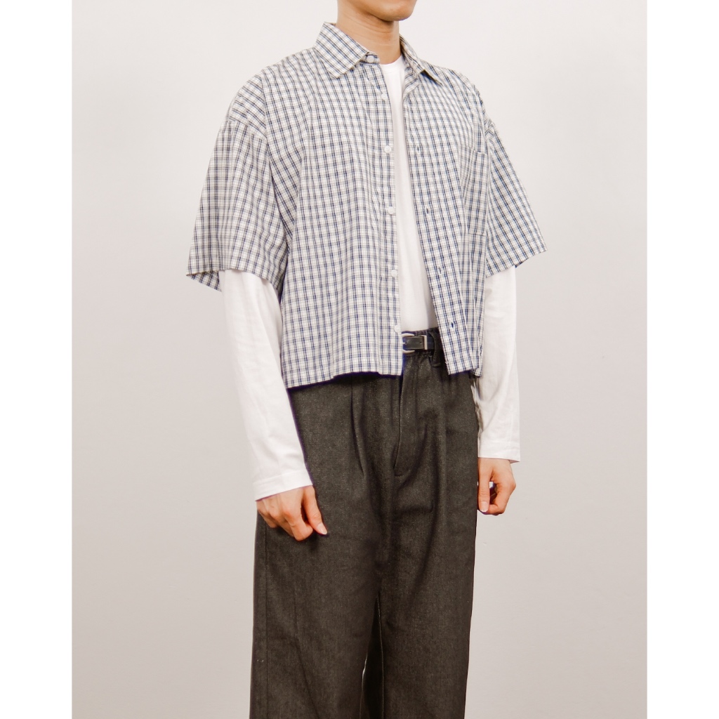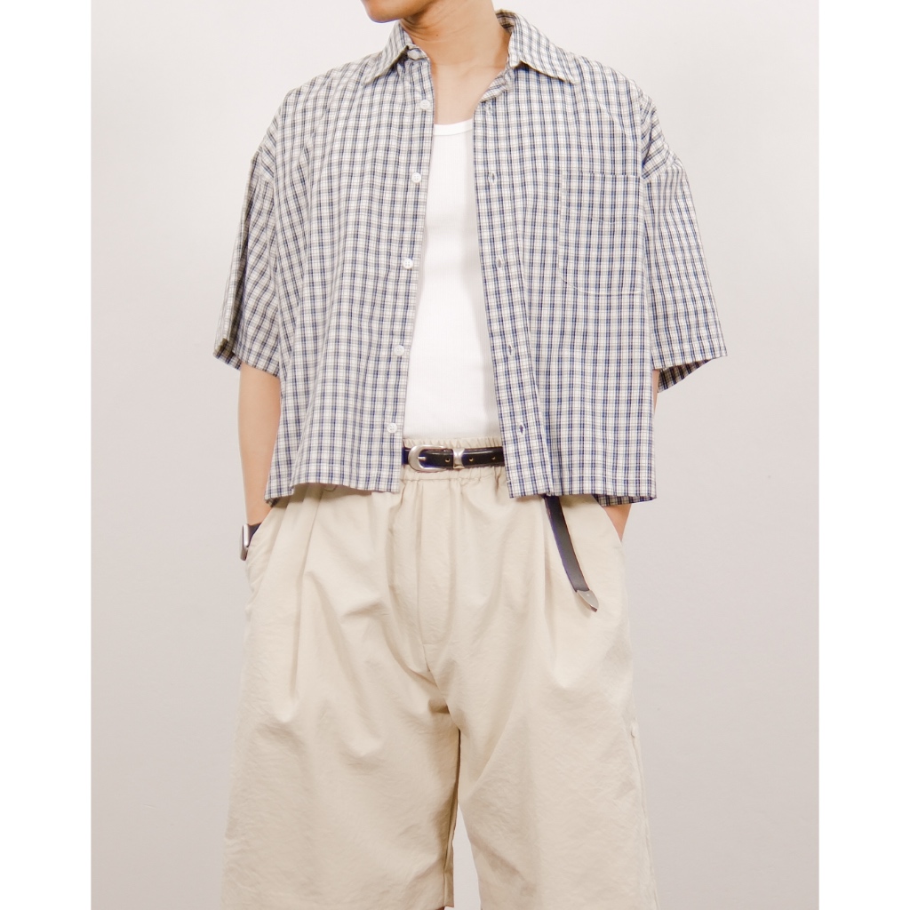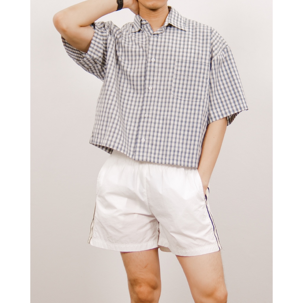 Extra-Cropped Shirt in Plaid Navy/Off-White | เสื้อเชิ้ตแขนสั้น ทรงครอปสั้นพิเศษ ลายสก็อตสีกรม/ขาว