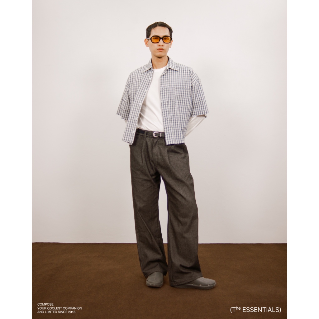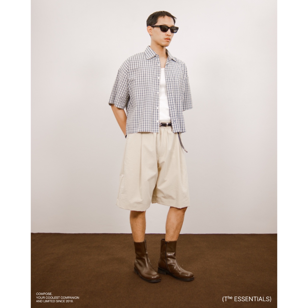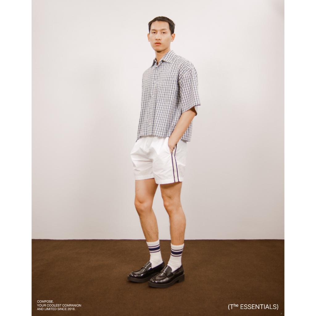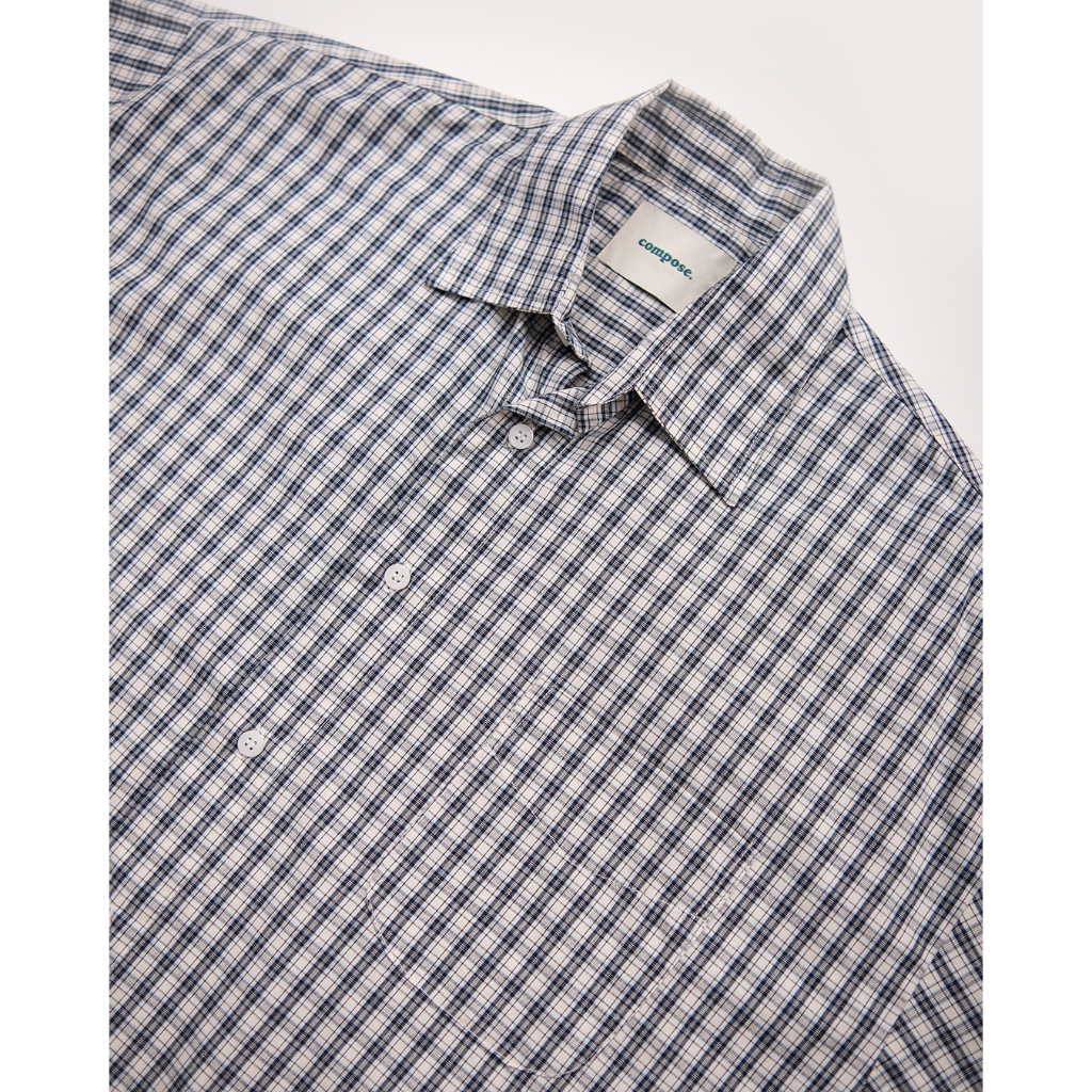Extra-Cropped Shirt in Plaid Navy/Off-White | เสื้อเชิ้ตแขนสั้น ทรงครอปสั้นพิเศษ ลายสก็อตสีกรม/ขาว