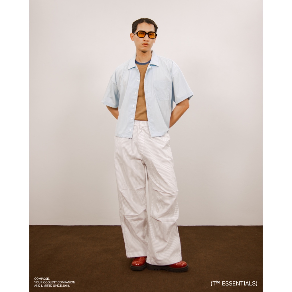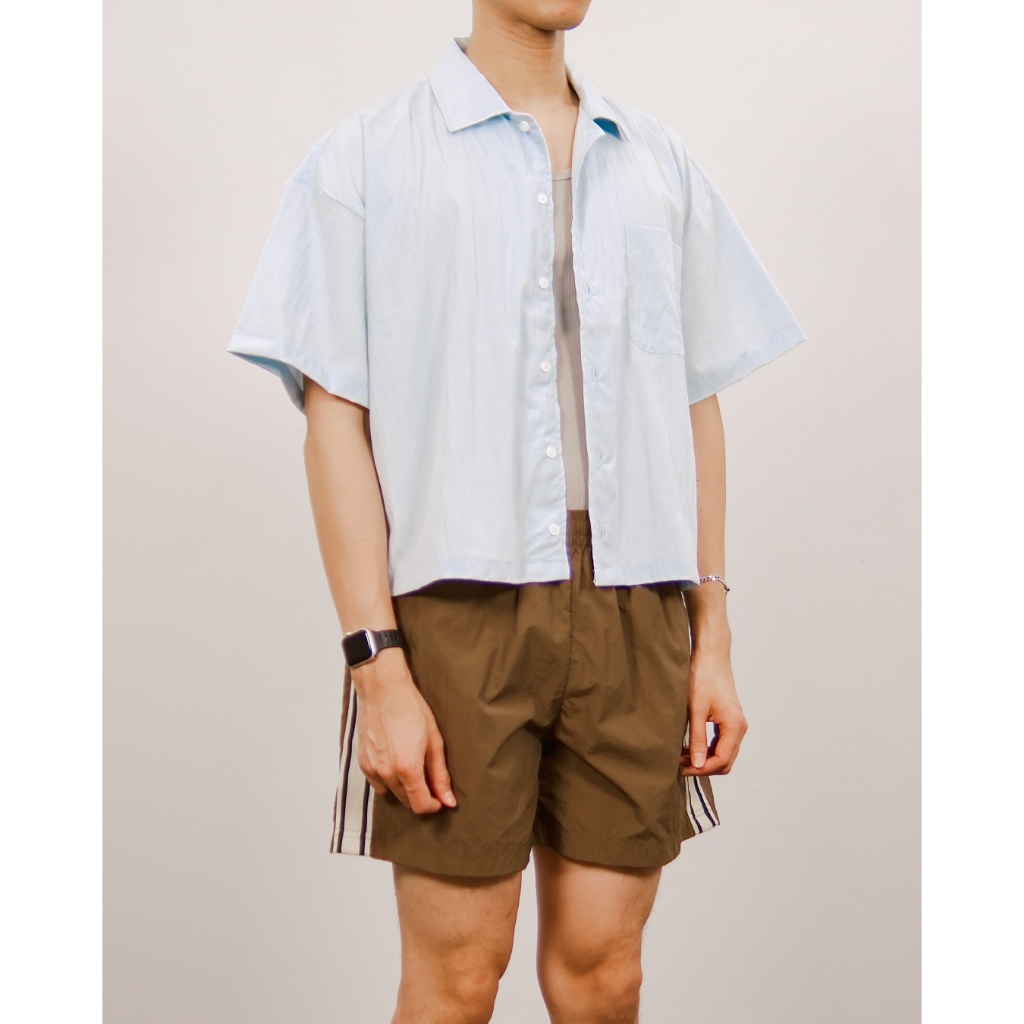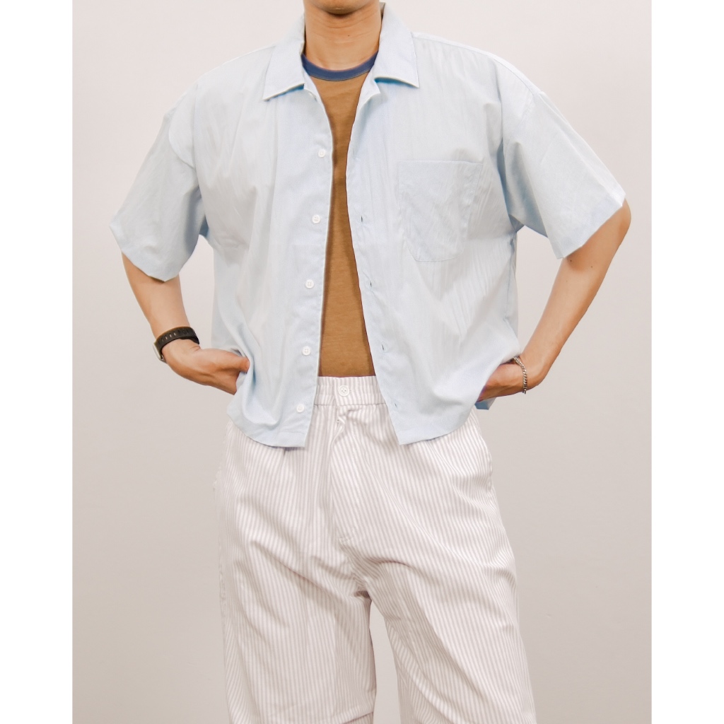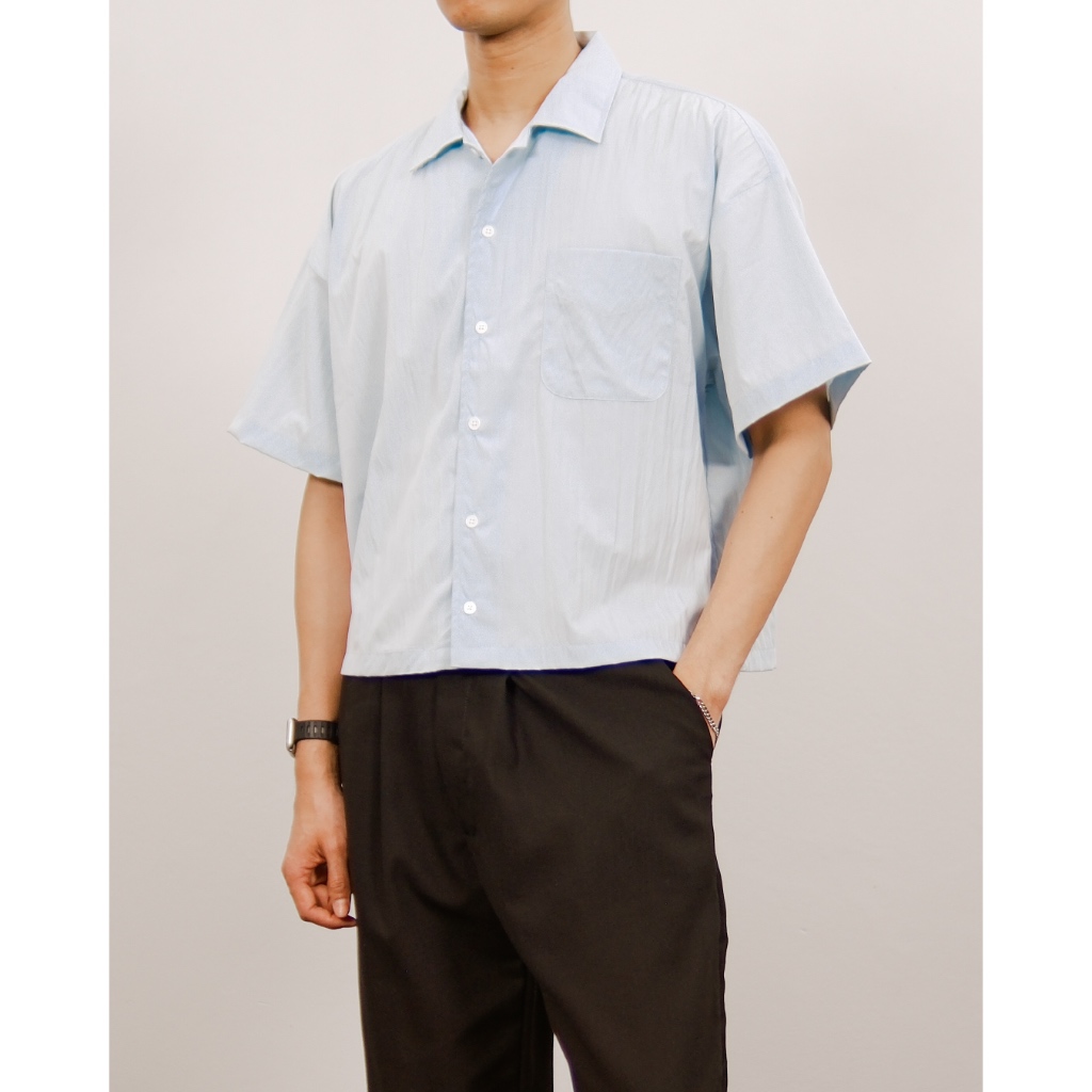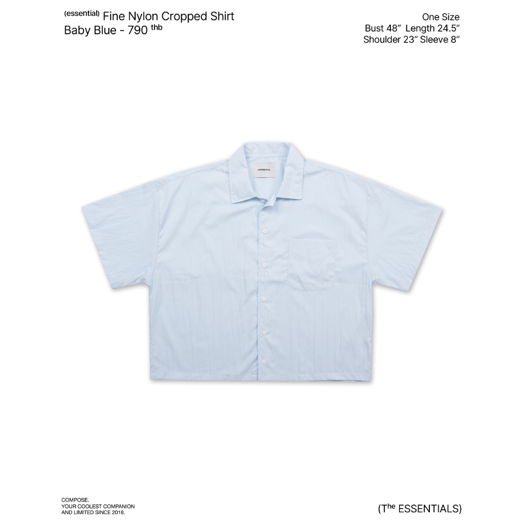 Fine Nylon Cropped Shirt in Baby Blue | เสื้อเชิ้ตแขนสั้น ทรงครอป ผ้าไนล่อน สีฟ้าอ่อน