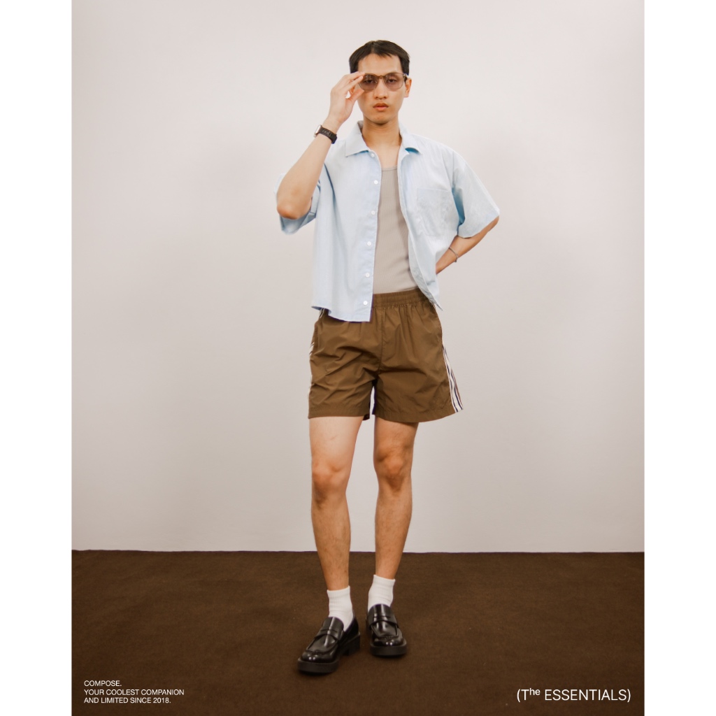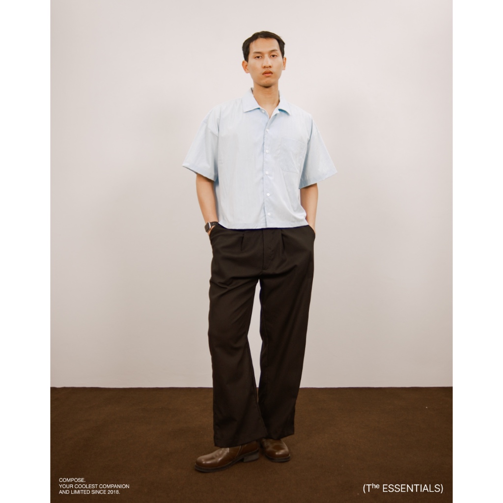 Fine Nylon Cropped Shirt in Dark Brown | เสื้อเชิ้ตแขนสั้น ทรงครอป ผ้าไนล่อน สีน้ำตาลเข้ม