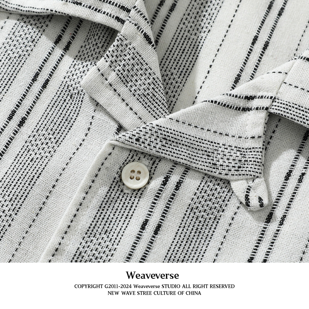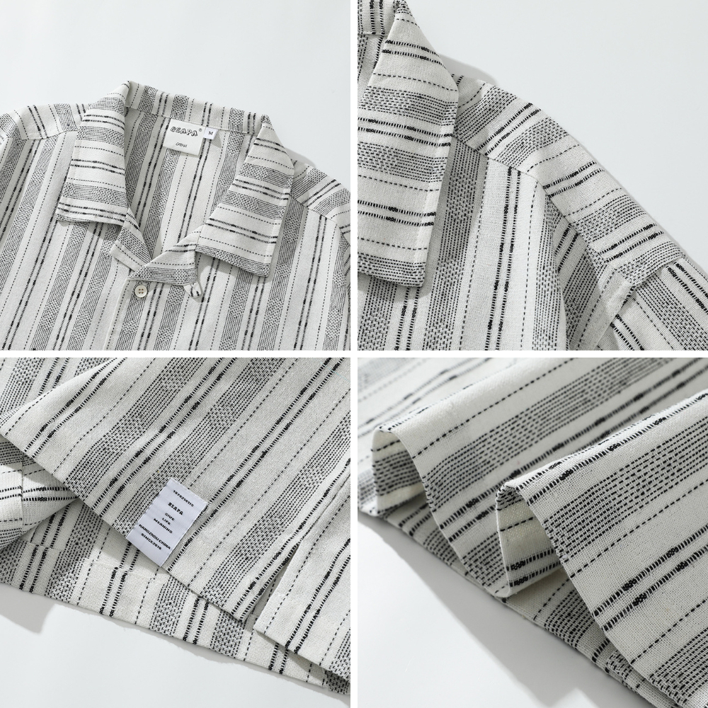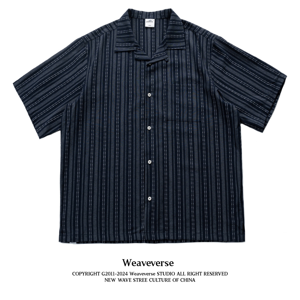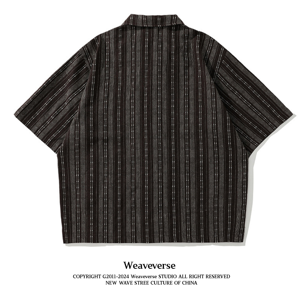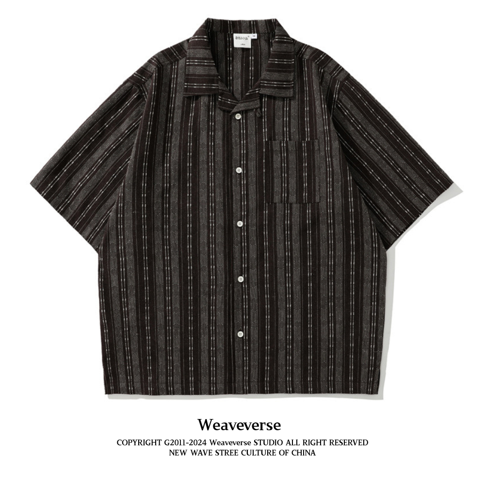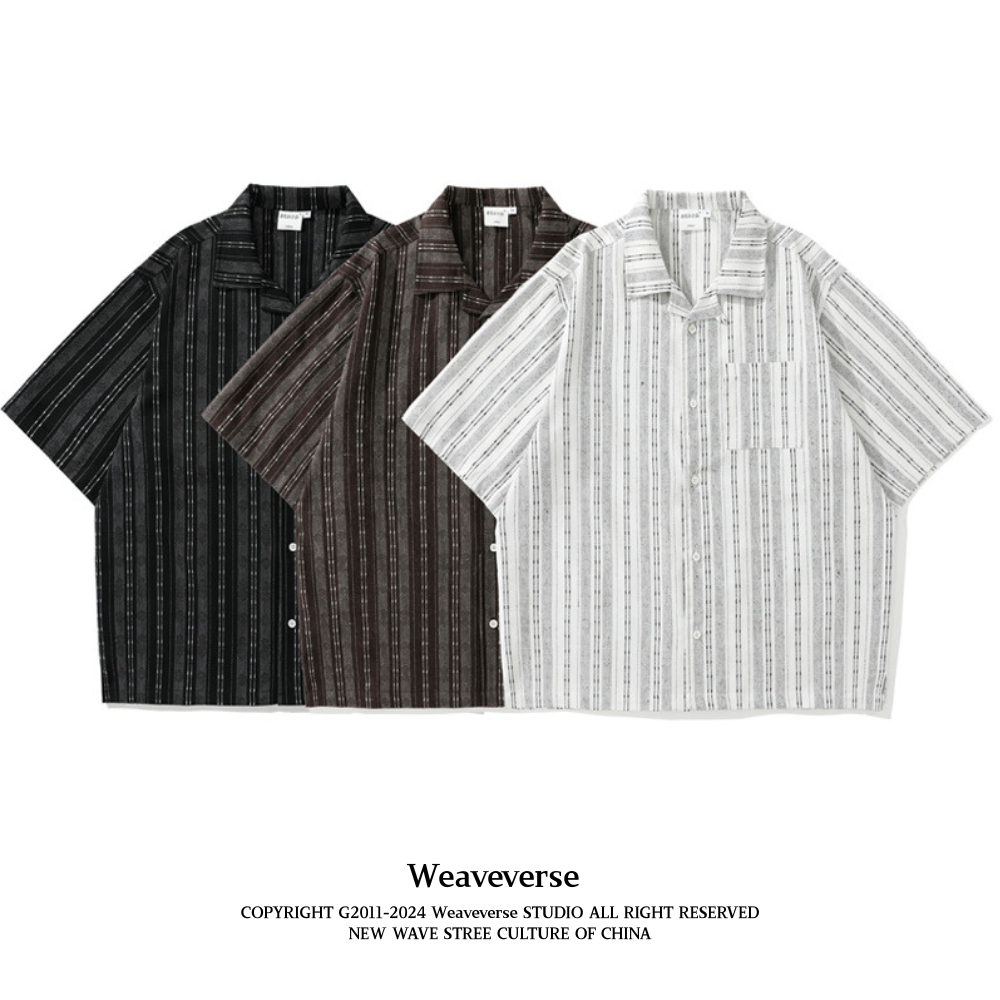 Suikone เสื้อเชิ้ตผู้ชายแขนสั้นแฟชั่นญี่ปุ่นสไตล์ฮาราจูกุสไตล์ฮ่องกงเสื้อเชิ้ตแขนสั้นลายทางสบายๆใส่ได้ทั้งผู้ชายและผู้หญิง