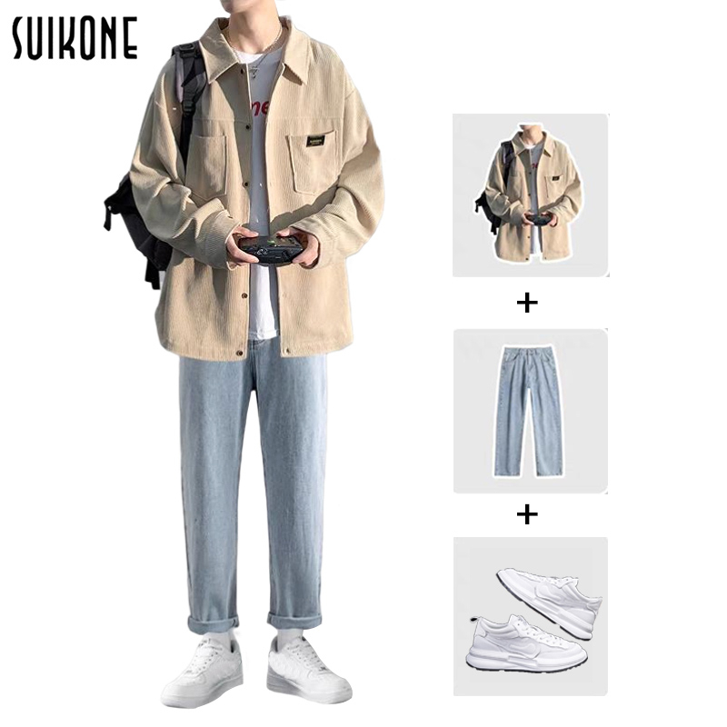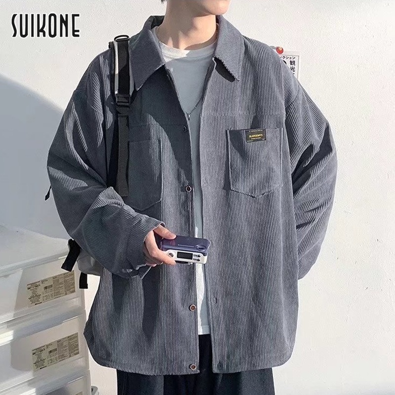 Suikone เสื้อผู้ชาย เสื้อเชิ้ตแขนยาวผู้ชายแฟชั่น 2022 เวอร์ชั่นเกาหลีใหม่แจ็คเก็ตหลวม ins พิมพ์เสื้อเชิ้ตลำลองคุณภาพสูง Cotton