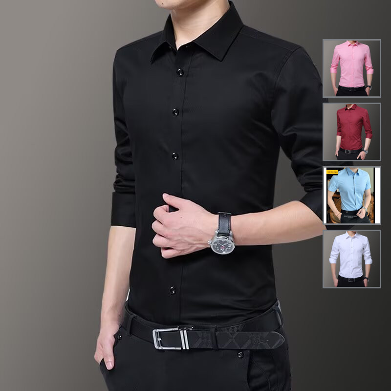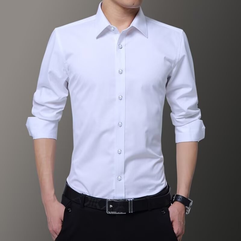 Tianlesiwei เสื้อเชิ้ตแขนยาวผู้ชายสีขาวอเนกประสงค์ – เหมาะสําหรับโอกาสทางการและลําลองทรงเข้ารูป