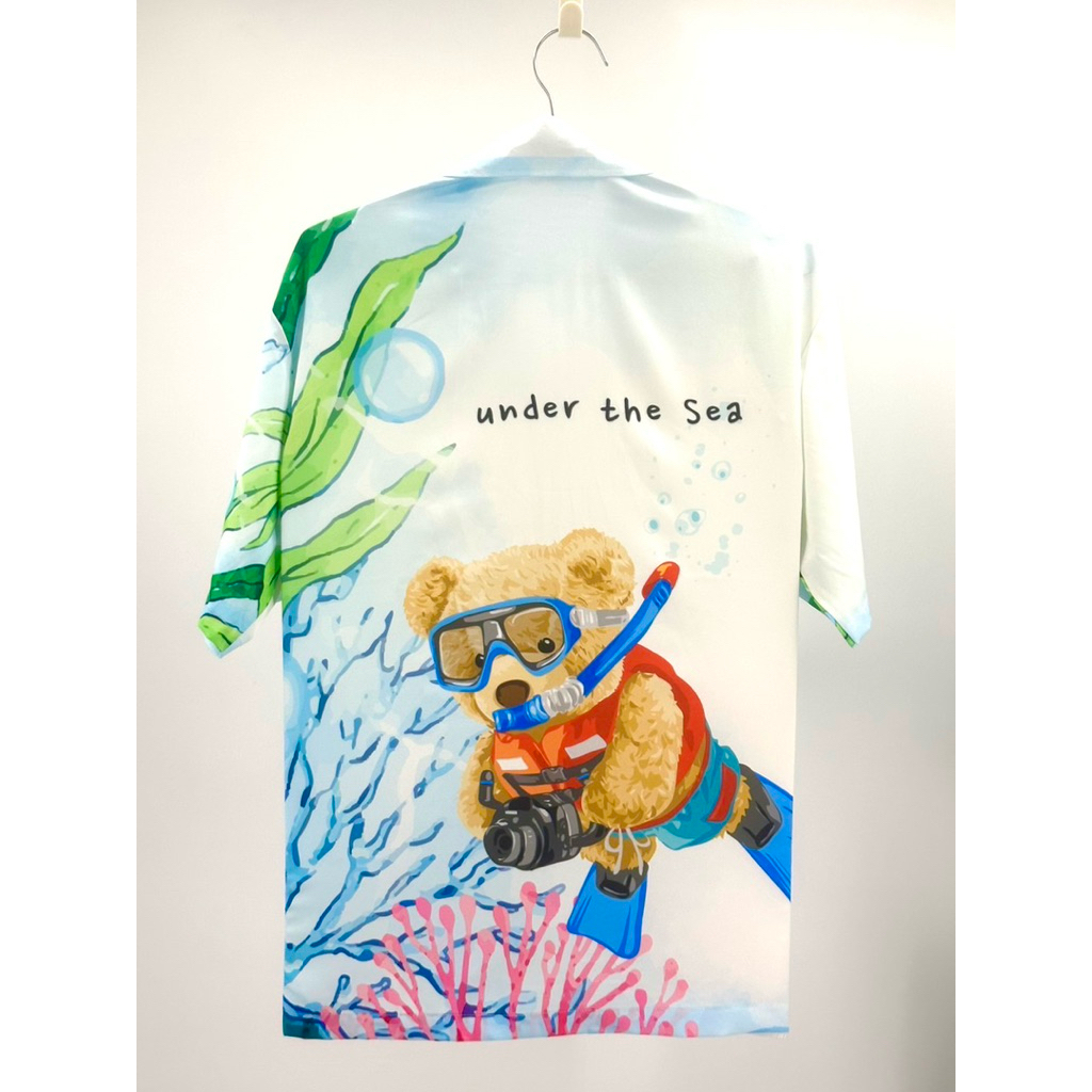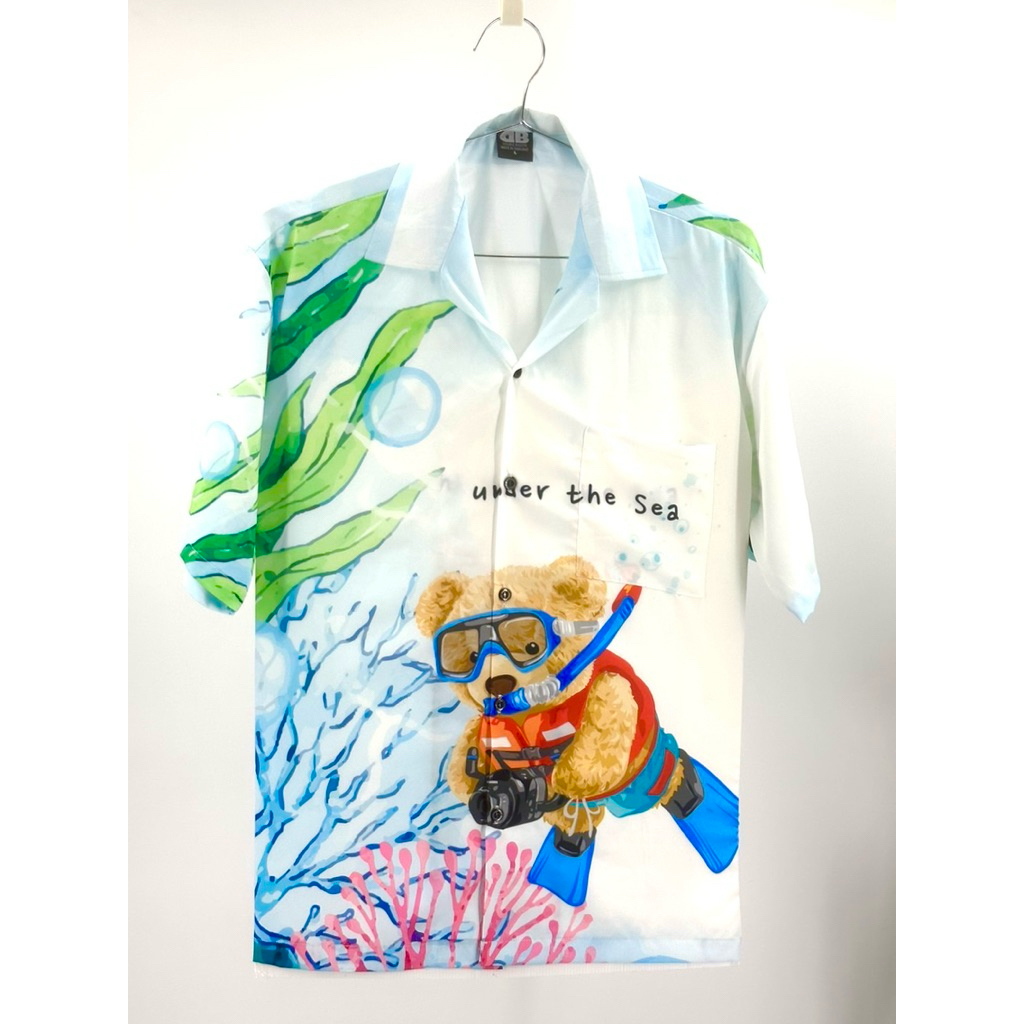 VIPSHIRT เสื้อเชิ้ตแขนสั้น ลายหมาอยู่ในน้ำ