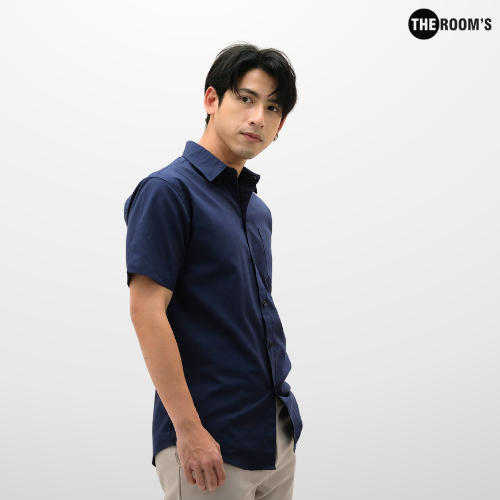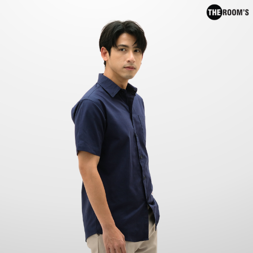 THE ROOM’S – เดอะรูม เสื้อเชิ้ต คอปก สีกรมท่า Oxford แขนสั้น รีดง่าย ใส่สบาย