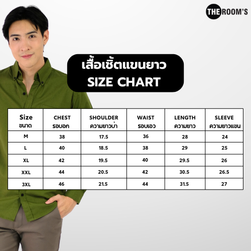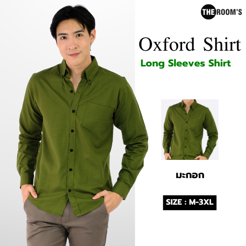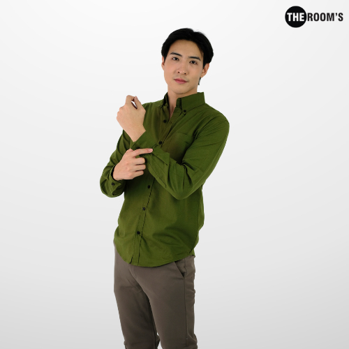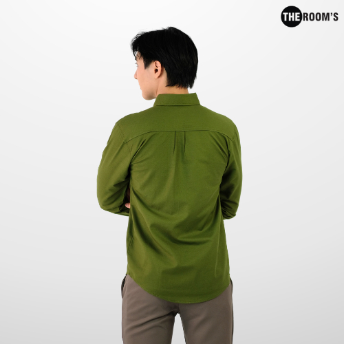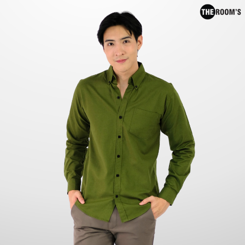 THE ROOM’S – เดอะรูม เสื้อเชิ้ต คอปก สีมะกอก Oxford แขนยาว รีดง่าย ใส่สบาย
