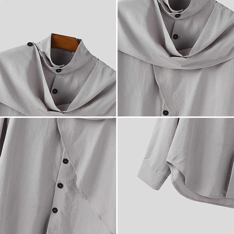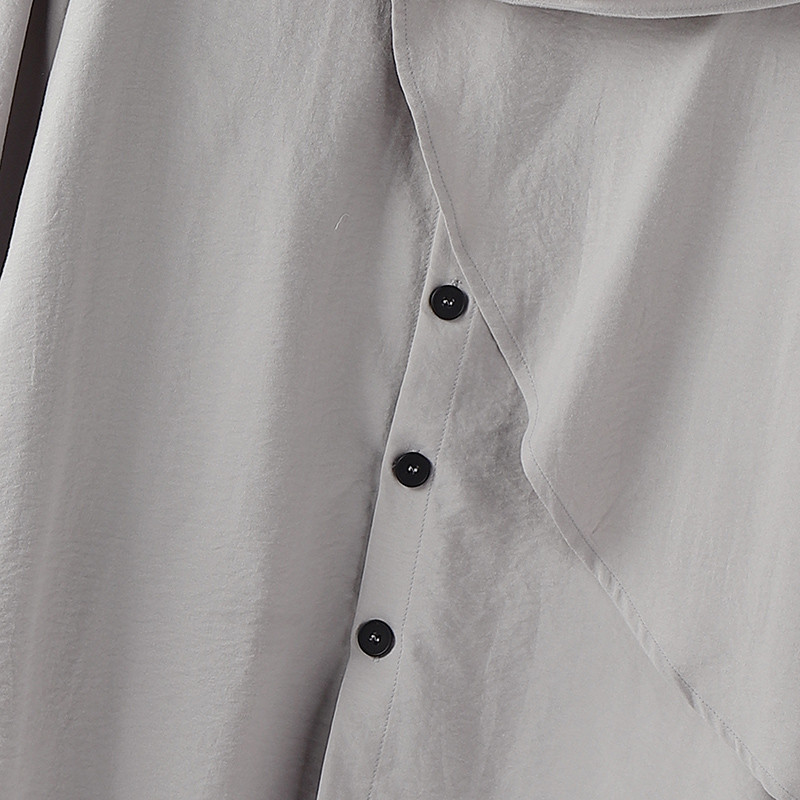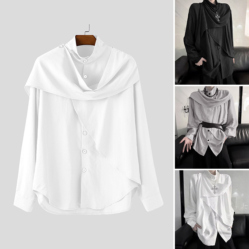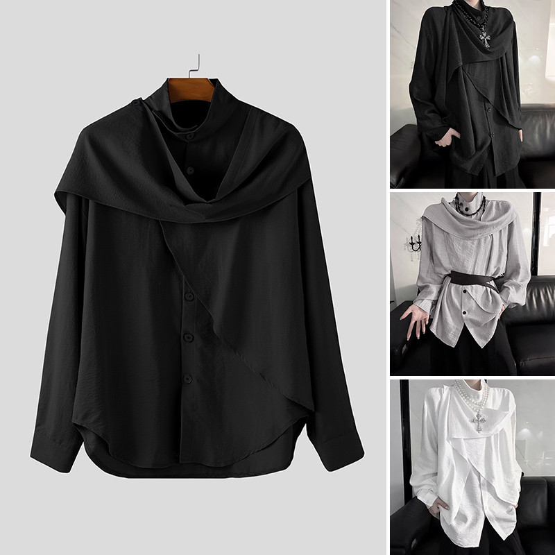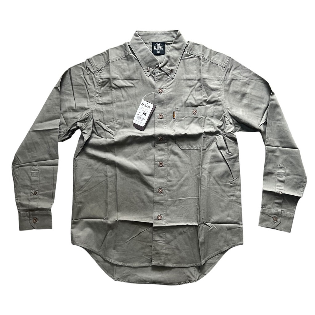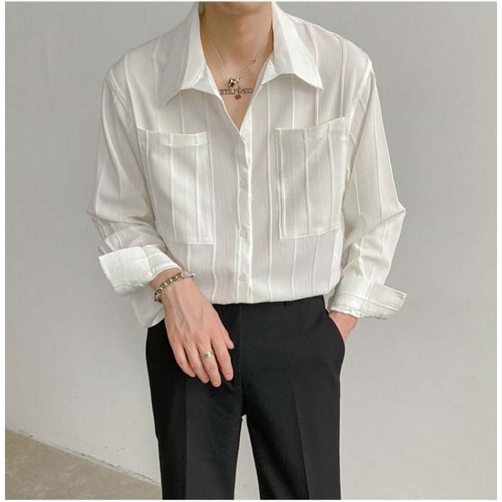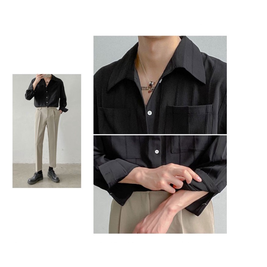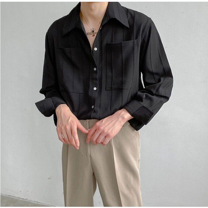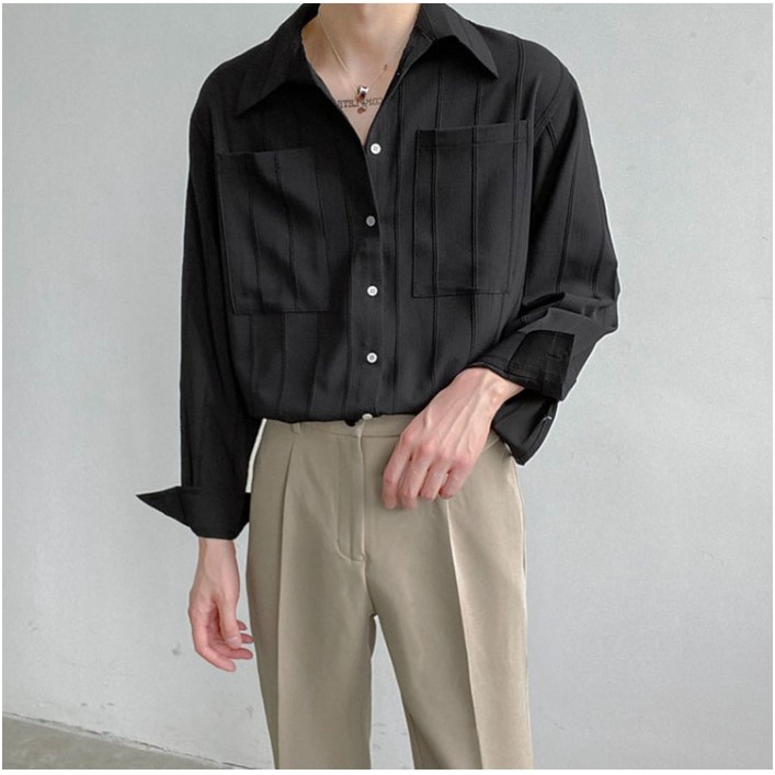 ชุดเสื้อเชิ้ตผู้ชายสีพื้น สไตล์อเมริกัน แขนยาว หลวม สบาย หลายกระเป๋า ชุดทำงาน