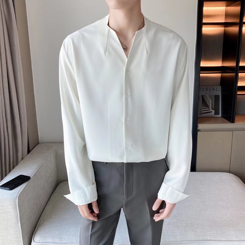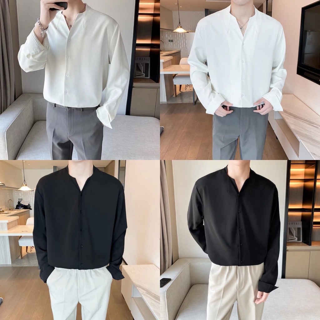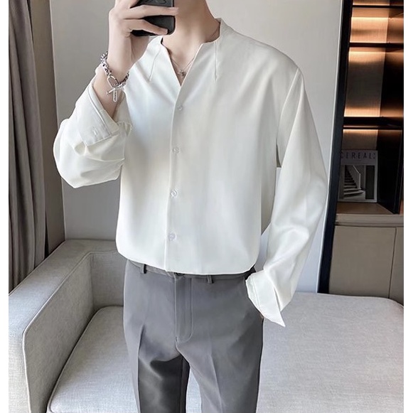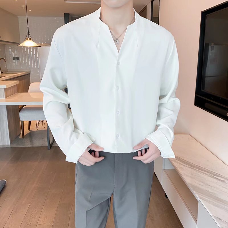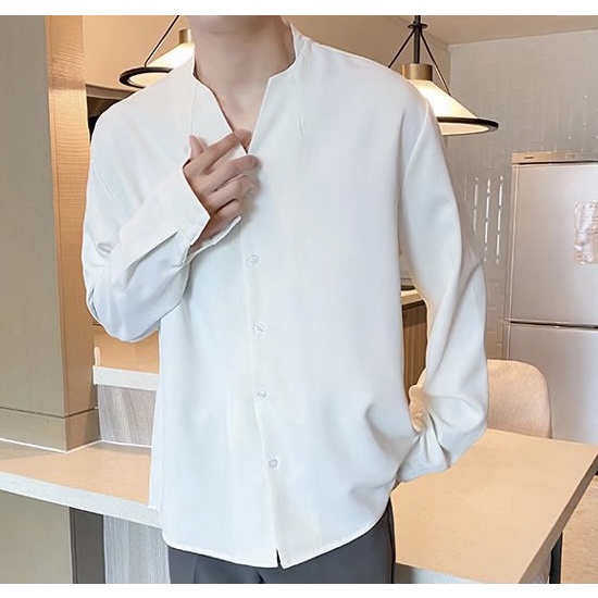 พร้อมส่ง เสื้อเชิ้ตคอวี แขนยาว ผ้าหนาไม่บาง ใส่สบาย งานดี สไตล์เกาหลี SL48