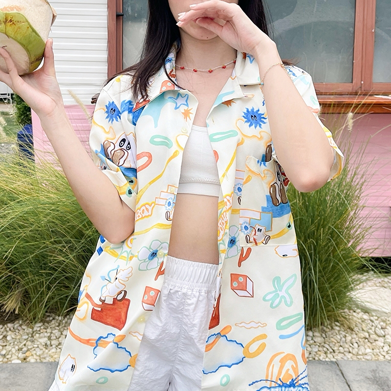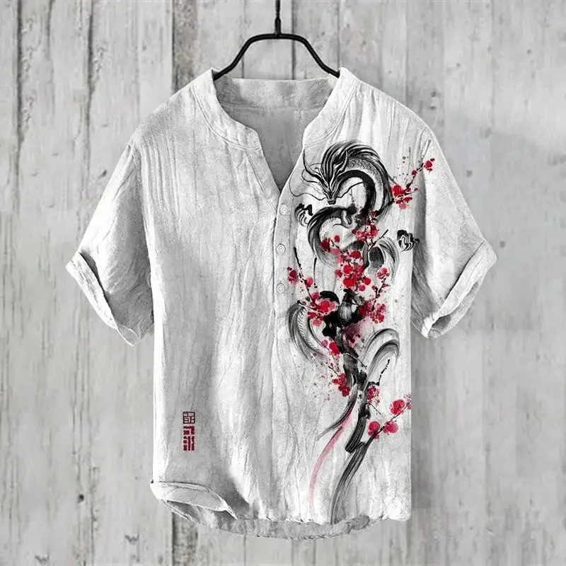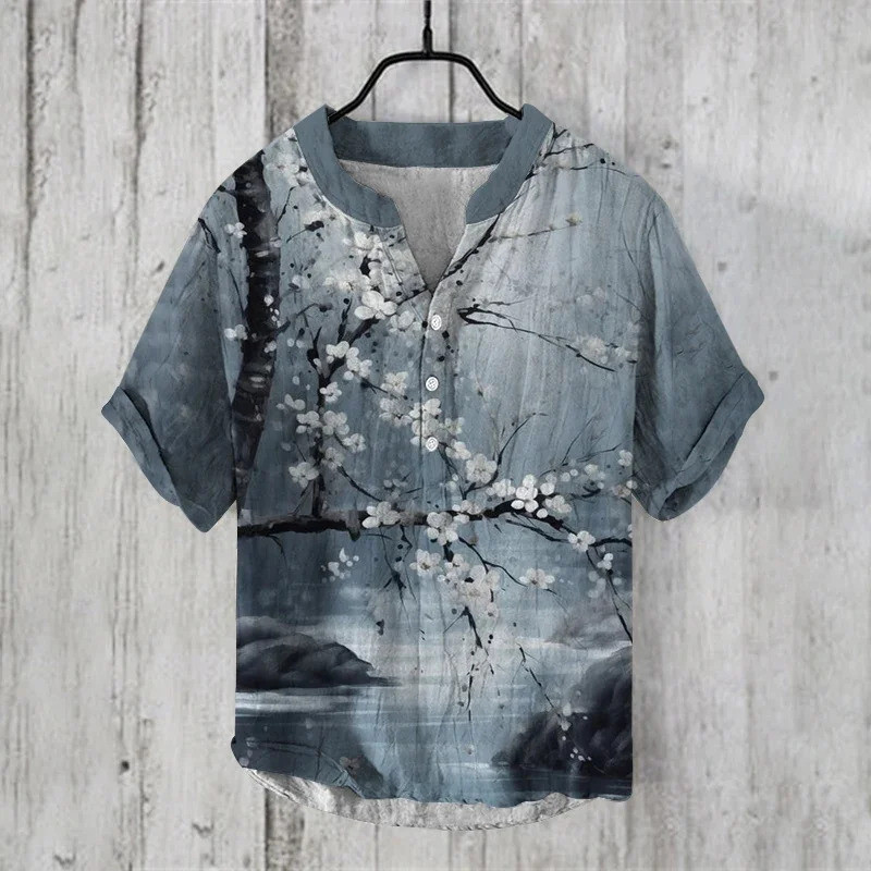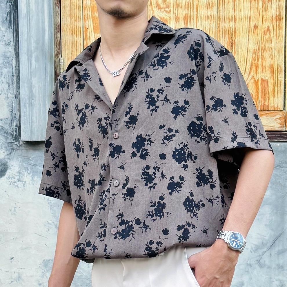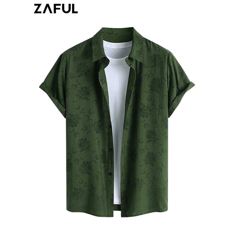 Zaful เสื้อเชิ้ตแขนสั้น พิมพ์ลายดอกไม้ สไตล์วินเทจ ฤดูร้อน สตรีท เรียบง่าย สําหรับผู้ชาย