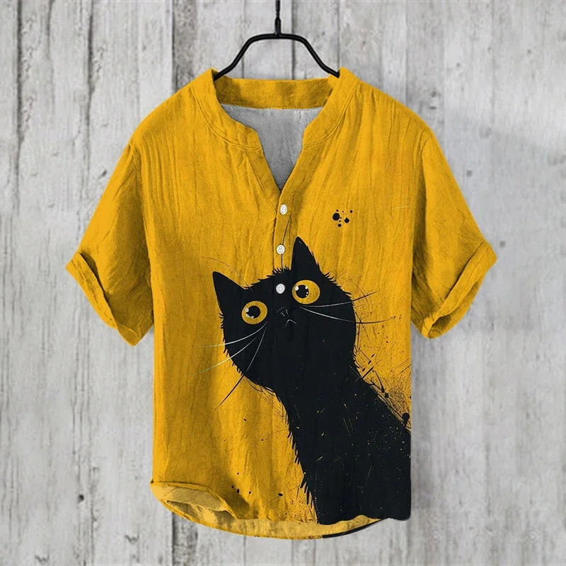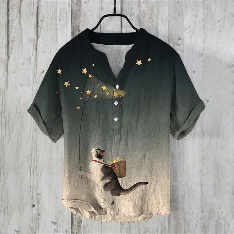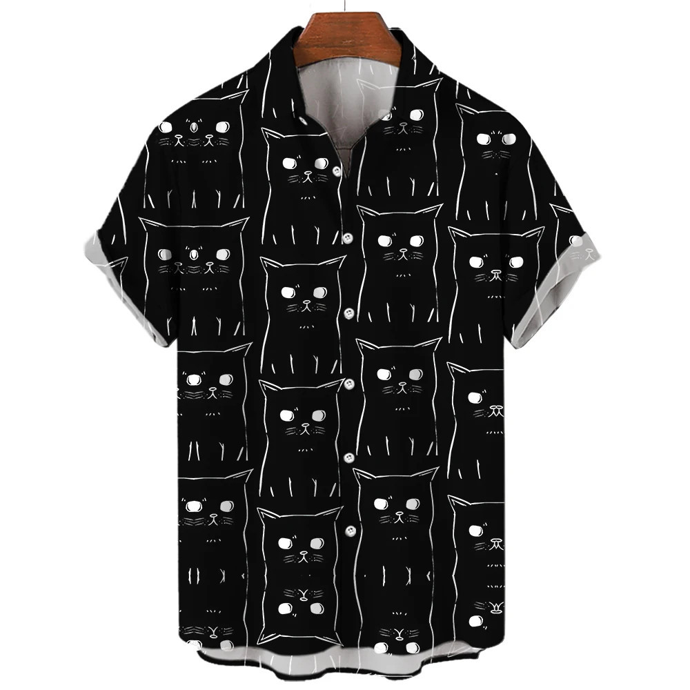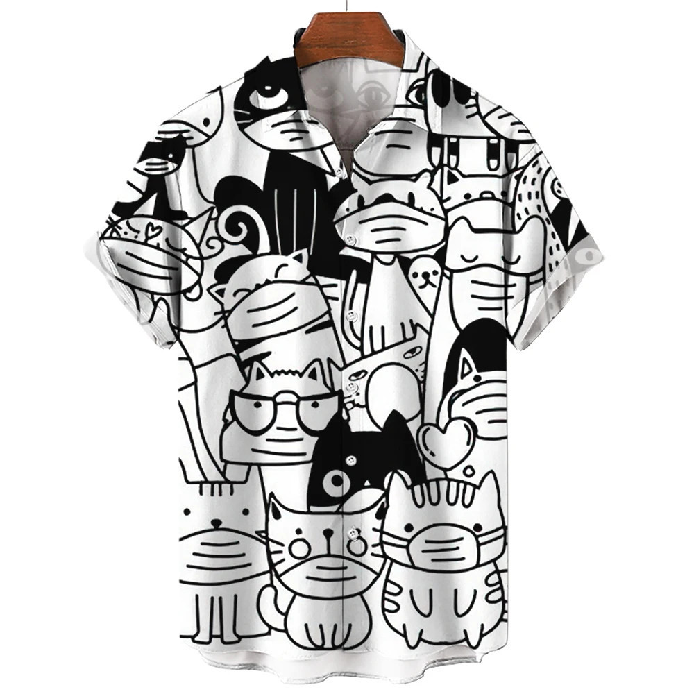 น่ารักการ์ตูนแมว 3D พิมพ์เสื้อ Man/ผู้หญิงสบายๆแฟชั่นแขนสั้นเสื้อผู้ชายปุ่มLapel Topsขนาดใหญ่Unisexเสื้อผ้า