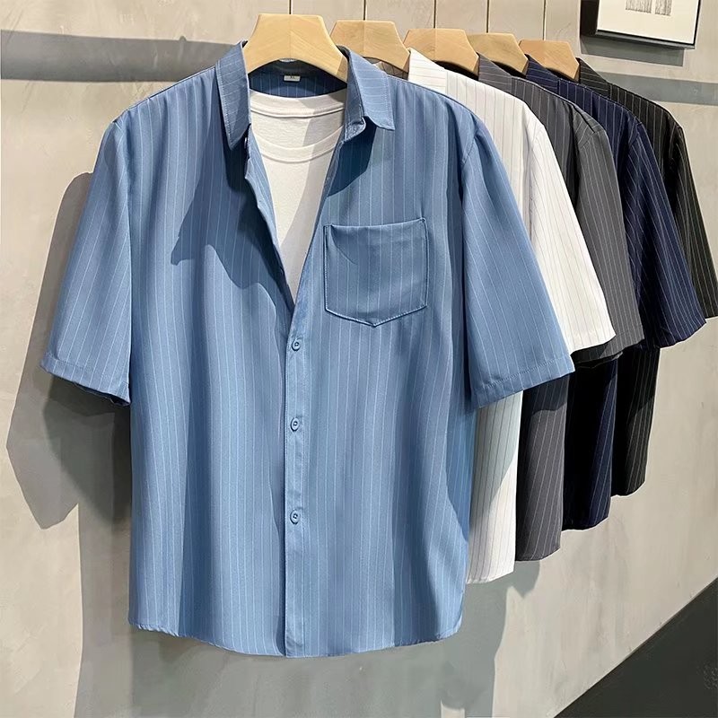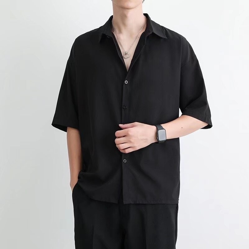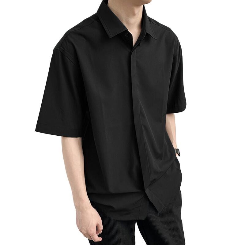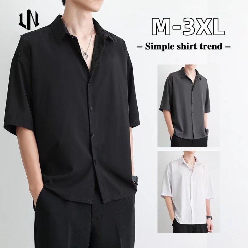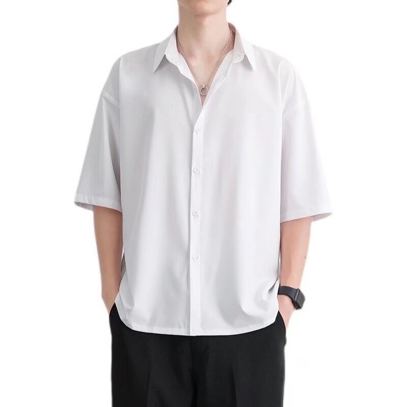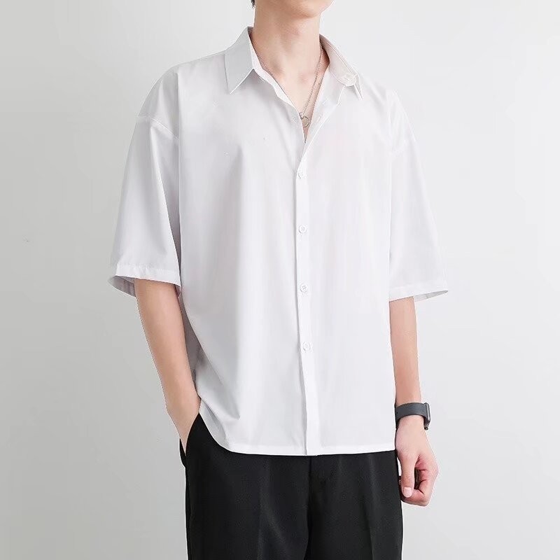 พร้อมส่ง เสื้อเชิ้ตเบสิค เสื้อเชิ้ตแขนสั้น แฟชั่นไม่จํากัดเพศ ทันสมัย เนื้อผ้าไหมทนริ้วรอยนุ่ม เสื้อเชิ้ตธุรกิจ