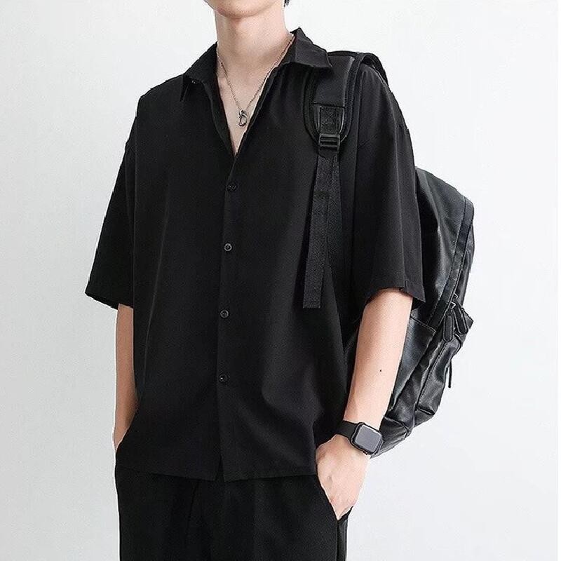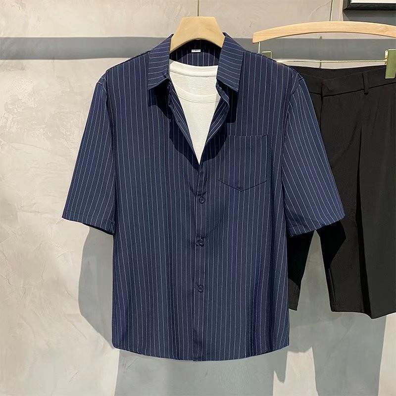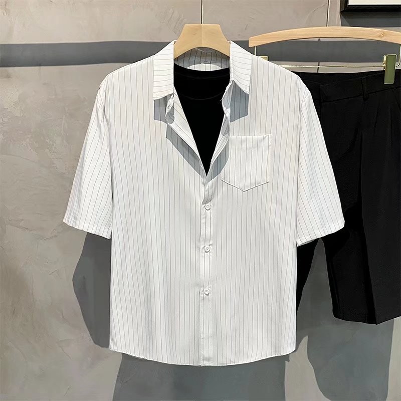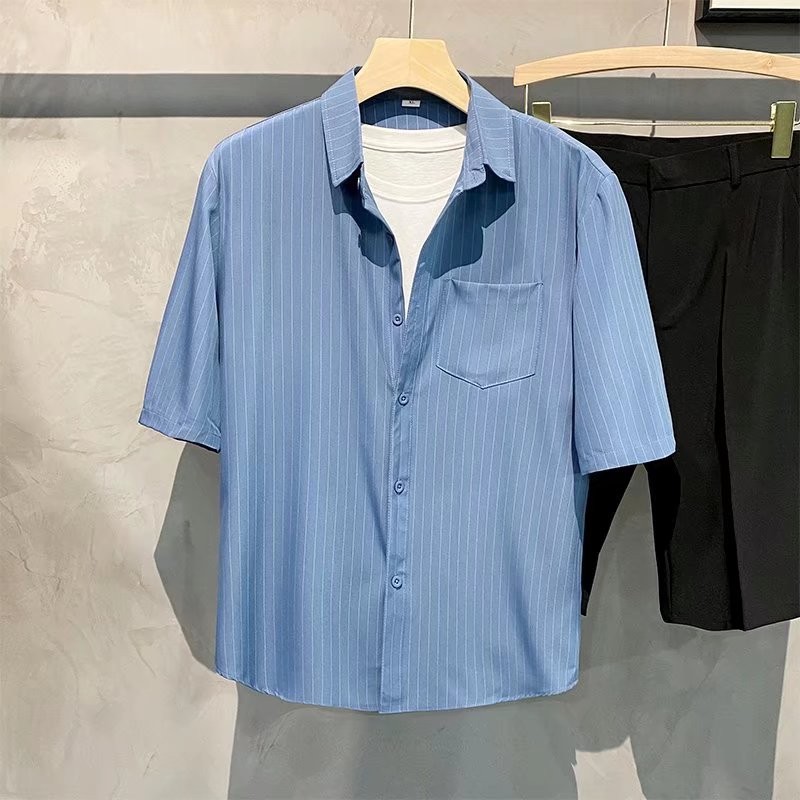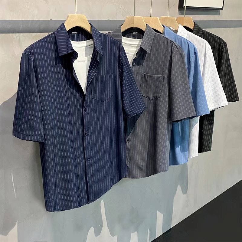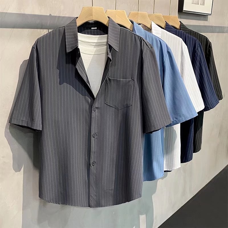 พร้อมส่ง เสื้อเชิ้ตเบสิค เสื้อเชิ้ตแขนสั้น แฟชั่นไม่จํากัดเพศ ทันสมัย เนื้อผ้าไหมทนริ้วรอยนุ่ม เสื้อเชิ้ตธุรกิจ