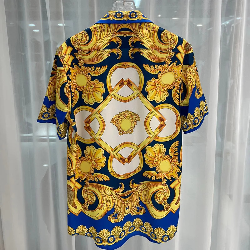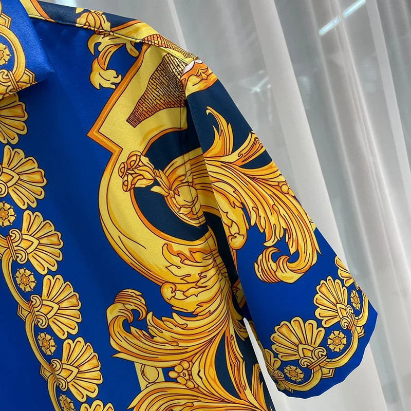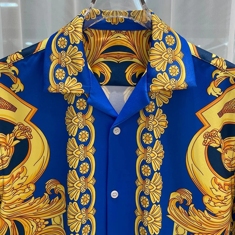 ผู้ชายหรูหราทองชุดดอกไม้เสื้อ 3ง เต็มพิมพ์แขนยาวปุ่มลงเสื้อพรรคผู้ชายชุดลําลองเสื้อด้านบนความสะดวกสบาย