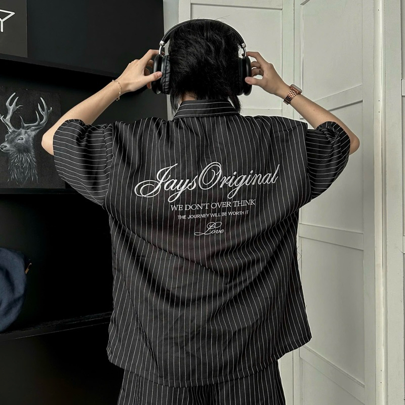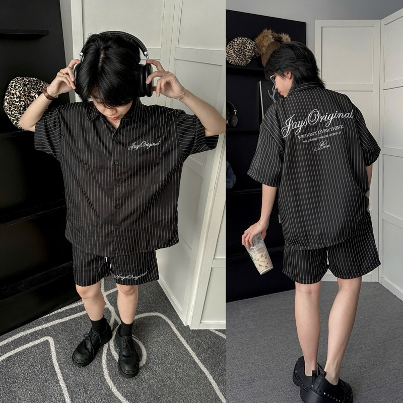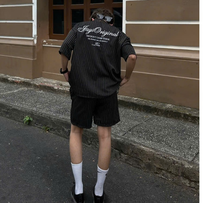 ต้นฉบับ ไม่จํากัดเพศ เสื้อเชิ้ตแขนสั้น ชุด แถบดํา (มีแยกแยก) ไม่จํากัดเพศ ผู้ชายและผู้หญิง ออลจัง สไตล์เสื้อหลวม