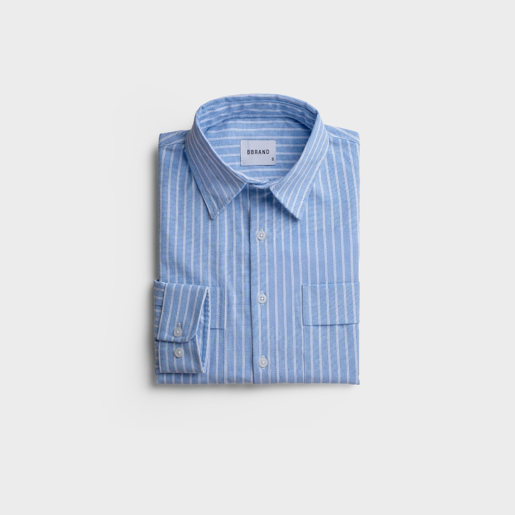 บีแบรนด์ เสื้อเชิ้ตแขนยาวทรงหลวมมีกระเป๋ากล่องและลายทางสีฟ้าอ่อนเยาว์