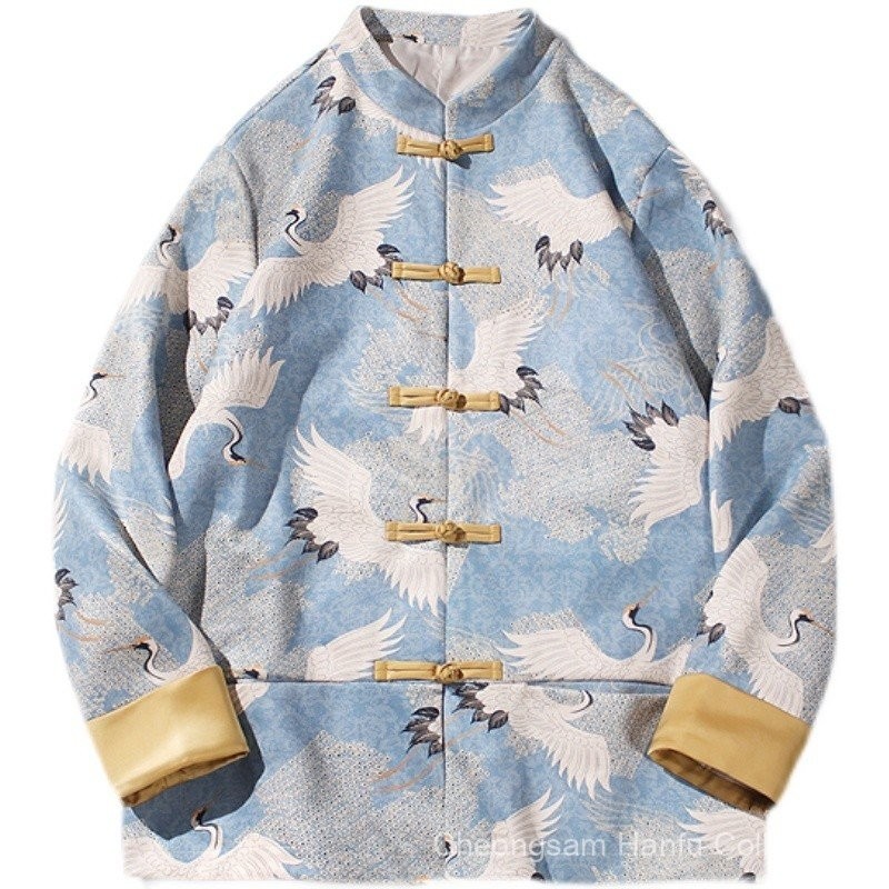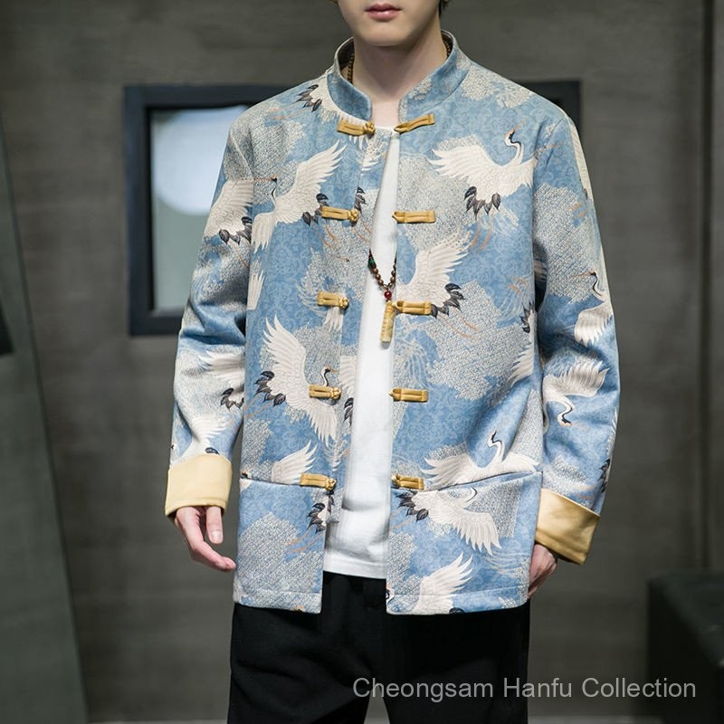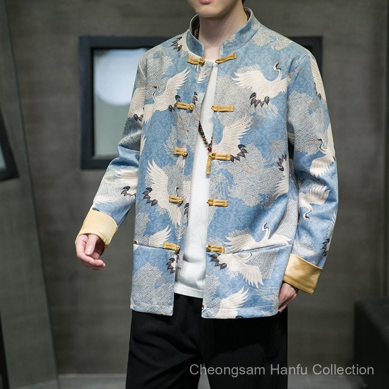 ย้อนยุคสไตล์จีนเครนแฟชั่นแห่งชาติรสสูทผู้ชายหนังกลับกำมะหยี่ปุ่มจีนนอตยืนปกเสื้อฤดูใบไม้ร่วงเยาวชนแจ็คเก็ตแฟชั่น