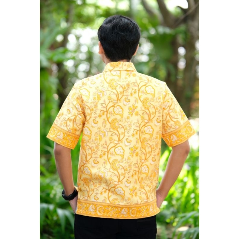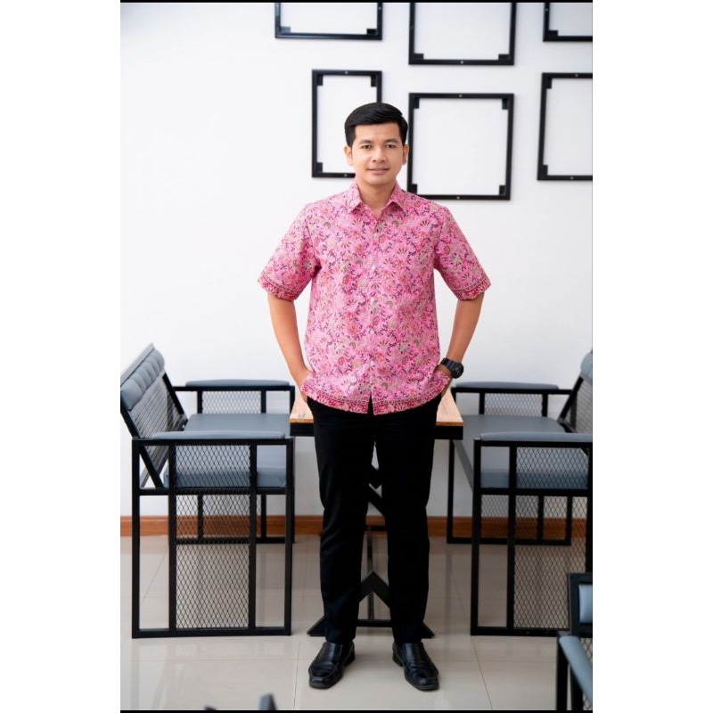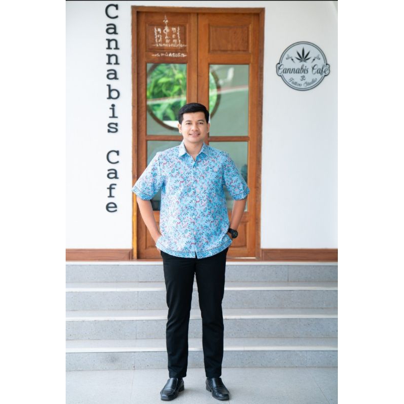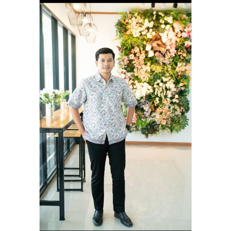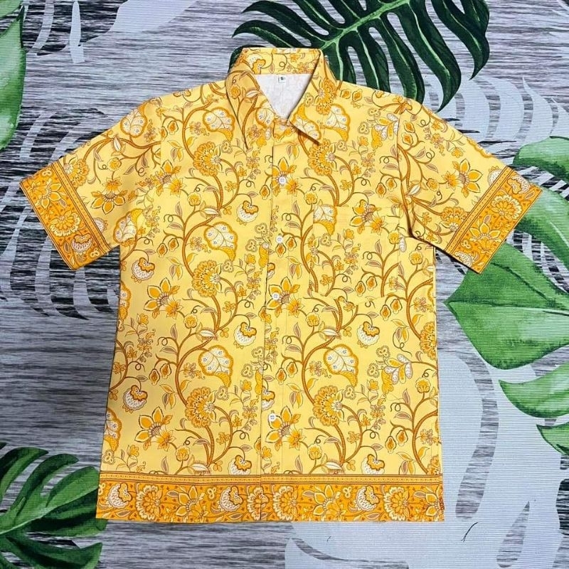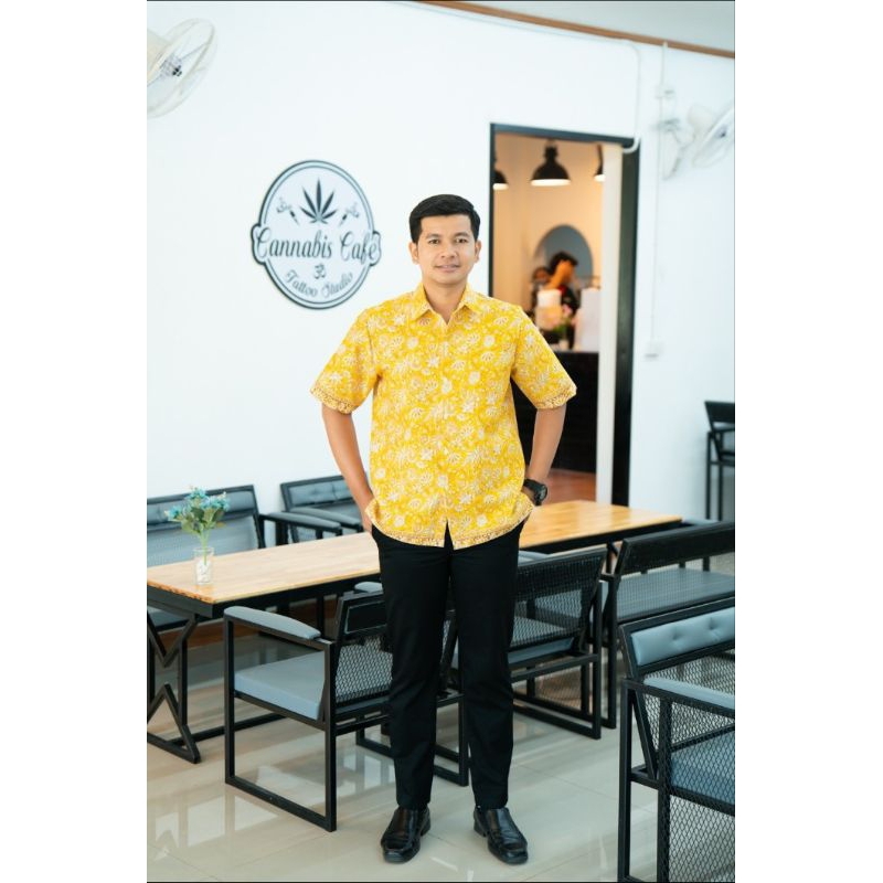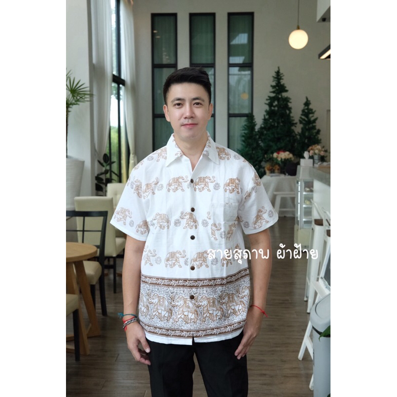 เสื้อทำงานเสื้อเชิ้ตผู้ชายเสื้อผ้าไทยใส่สบายลายดอกไม้งานอัดกาวทั้งตัวผ้าคอตตอลใส่สบายไม่ร้อน