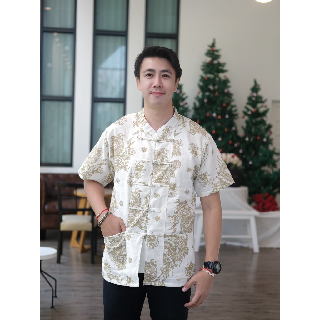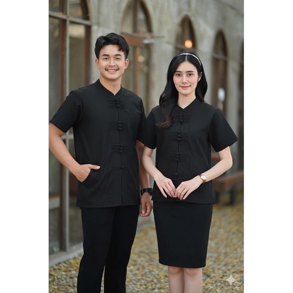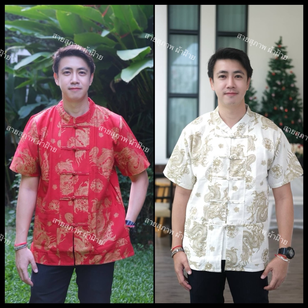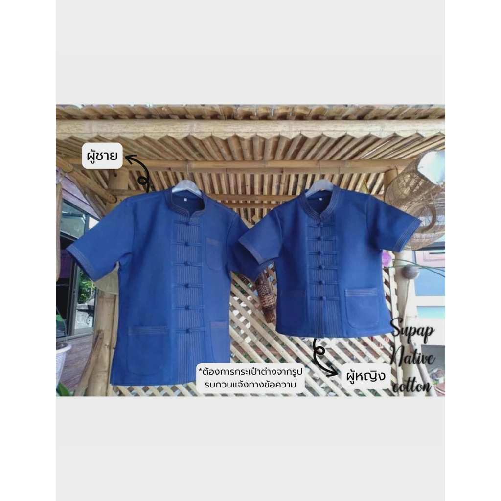 เสื้อผ้าฝ้ายชินมัยอัดกาวกระดุมจีน เเขนสั้น ผู้ชาย กระเป๋า 3 ใบ// ผู้หญิง กระเป๋า 2 ใบล่าง