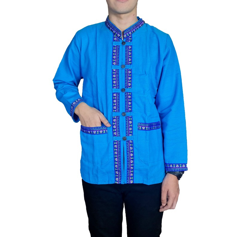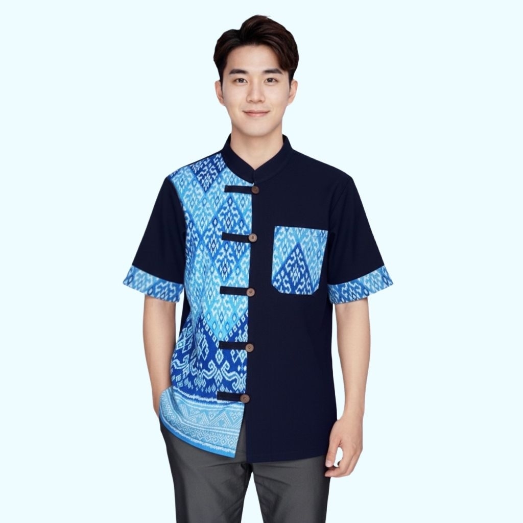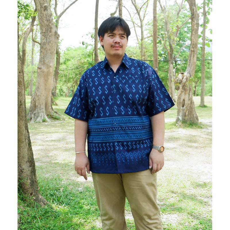เสื้อหม้อฮ่อมทรงซาฟารีลายขอไซต์บิ๊ก🙏💙อก52-60″งานสวย‼️ผ้าเนื้อดี‼️ใส่ได้ทุกเทศกาล