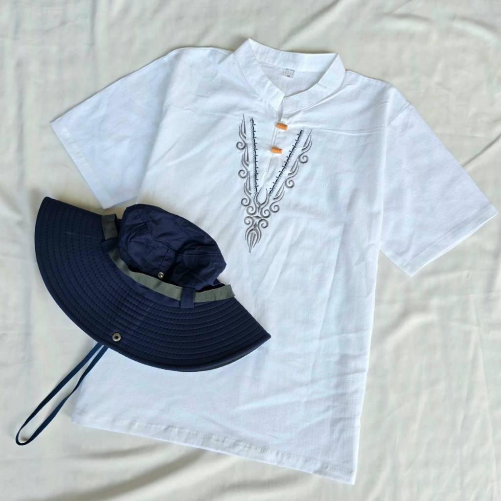 เสื้อพื้นเมืองทรงหม่อฮ่อมผ้าฝ้าย สีขาว ใส่สบาย7แบบ แขนสั้น/แขนยาว ราคาถูก มีปลายทาง