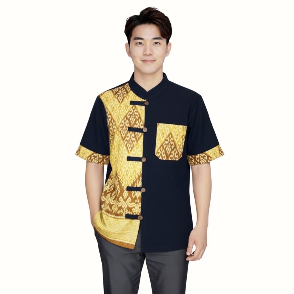 เสื้อเชิ๊ตม่อฮ่อม แบบดั้งเดิม คอปก กระดุมธรรมดา 4 กระเป๋า (มีฝาปิด) ใส่ได้ทั้งชายหญิง ไม่เข้ารูป