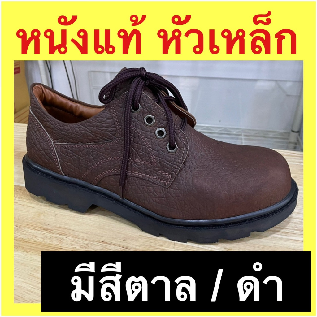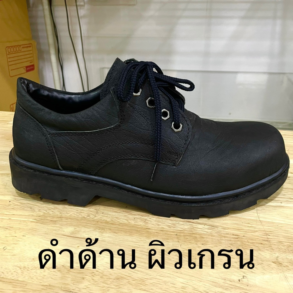รองเท้าหัวเหล็ก รองเท้าเซฟตี้ เหล็กนอกหนังกลับสีดำแท้100% รองเท้าเซฟตี้พื้นเย็บทั้งคู่อึดถึกทน