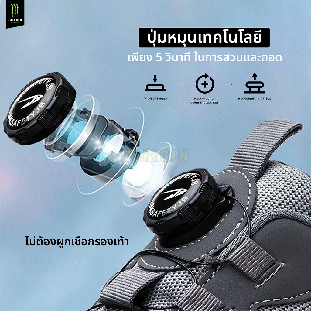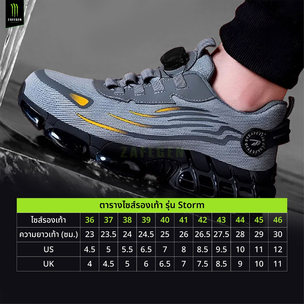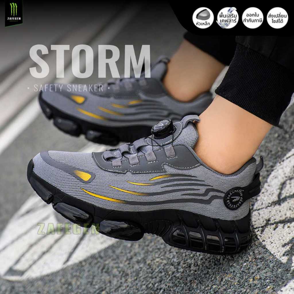 รองเท้าเซฟตี้รุ่น STORM สีเทา หัวเหล็กหน้าเท้ากว้าง พื้นยางกันลื่น มาพร้อมปุ่มหมุนเทคโนโลยี ไม่ต้องผูกเชือก