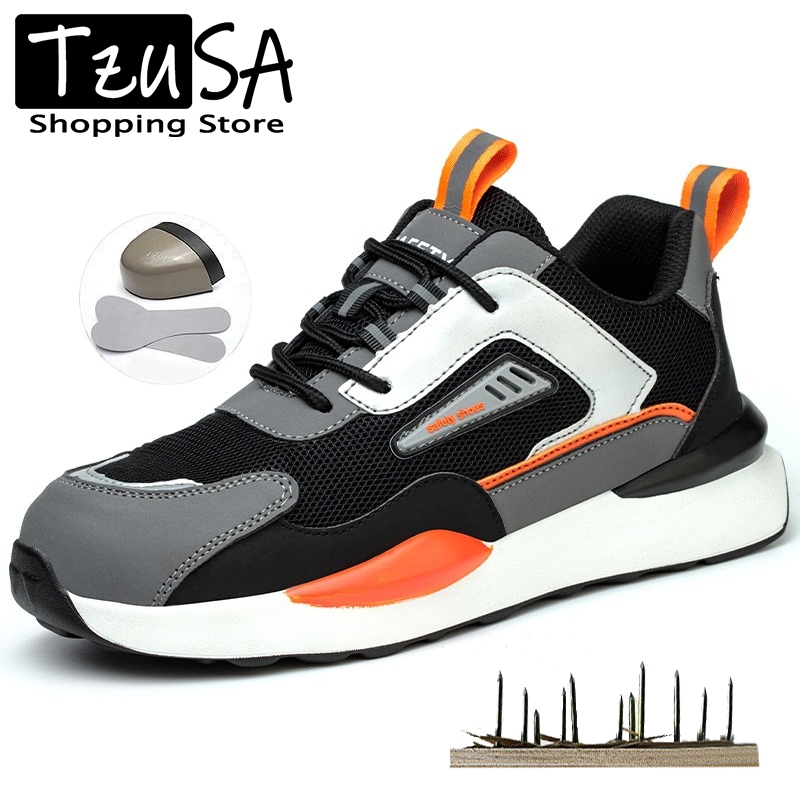 รองเท้าเซฟตี้ทรงสนีกเกอร์ใหม่ หัวเหล็ก ทนทานต่อการเจาะ สวมใส่สบาย